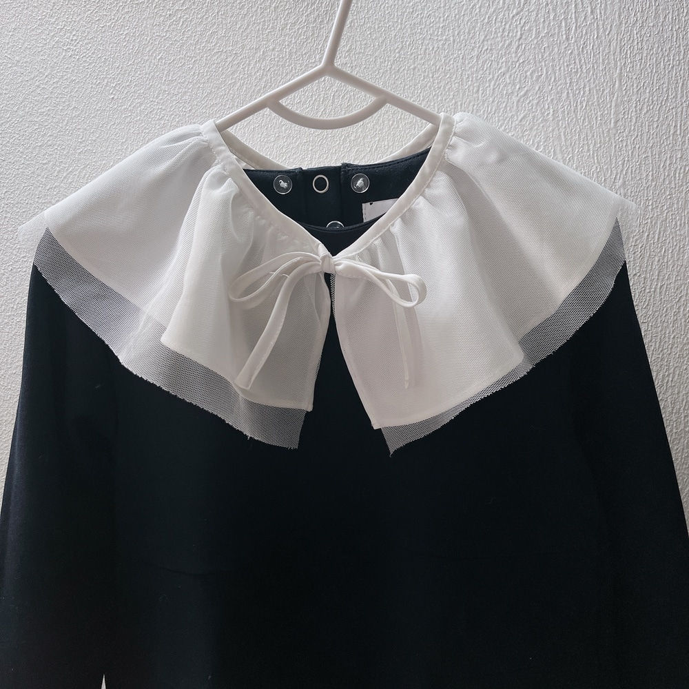 襟を外したワンピースに手持ちのチュール付きの付け襟をつけてみましたが、これも良き◎
