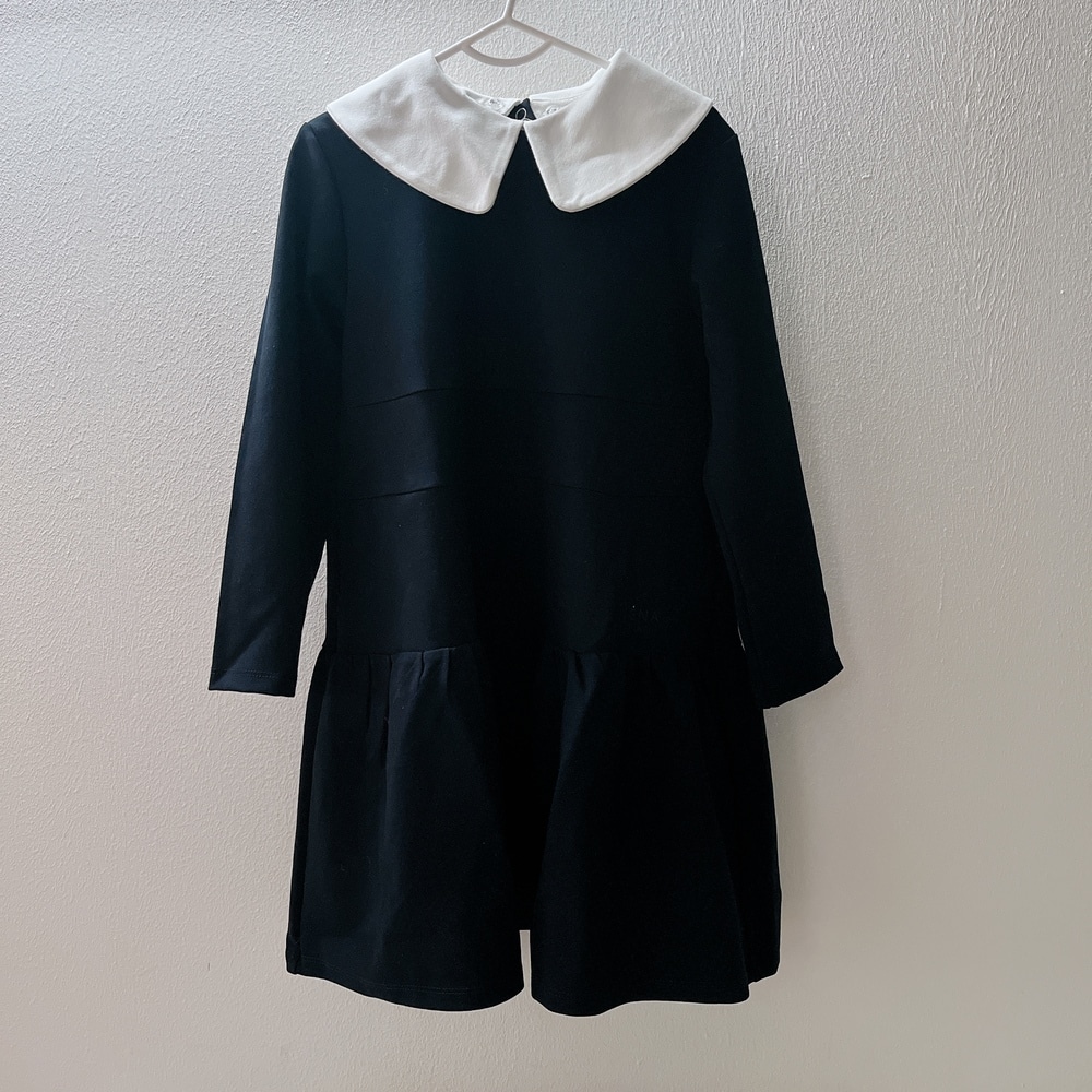 ジャージー素材のティアードワンピースに取り外し可能な付け襟が2種類セットになっています。