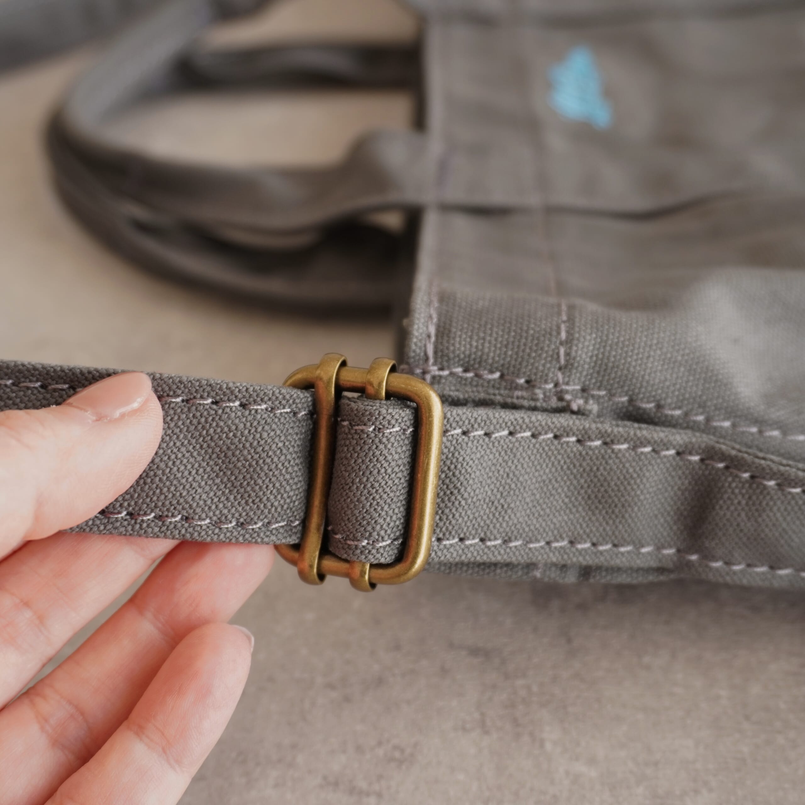 このトートバッグを製作するにあたりこだわった”長さ調節ができるストラップ”