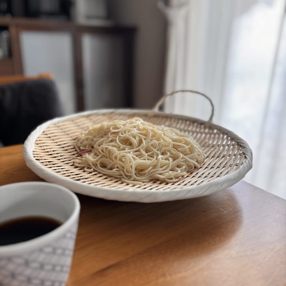 ところで干すのに使ったザルですが、昨年購入したもので。使いこなせるか自信が無くて、ずっと悩んでたんだけど、いざ買ってみたらこんな風に麺を盛りつけたり