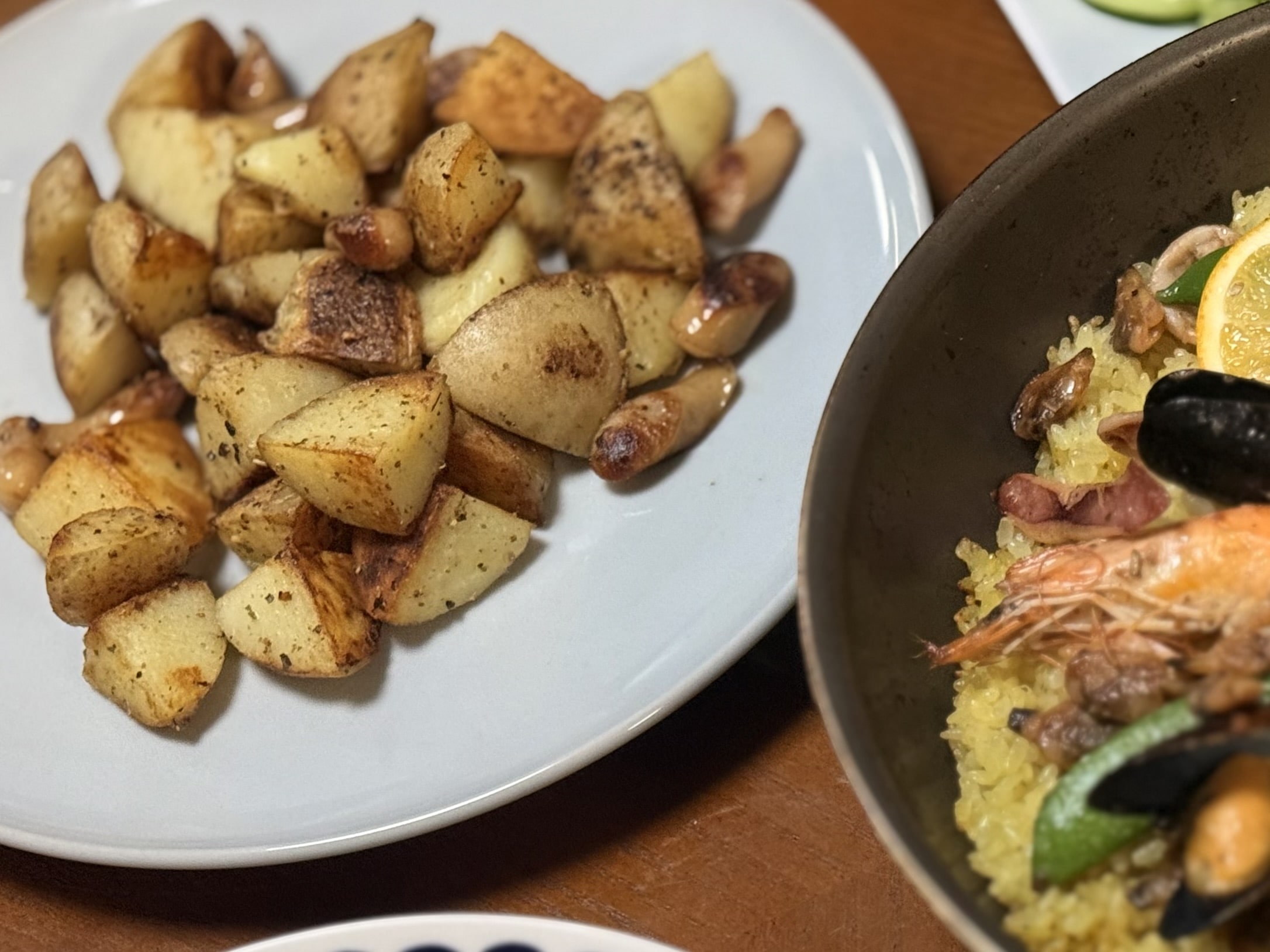 息子からの強い希望でパエリアをメインにしました。