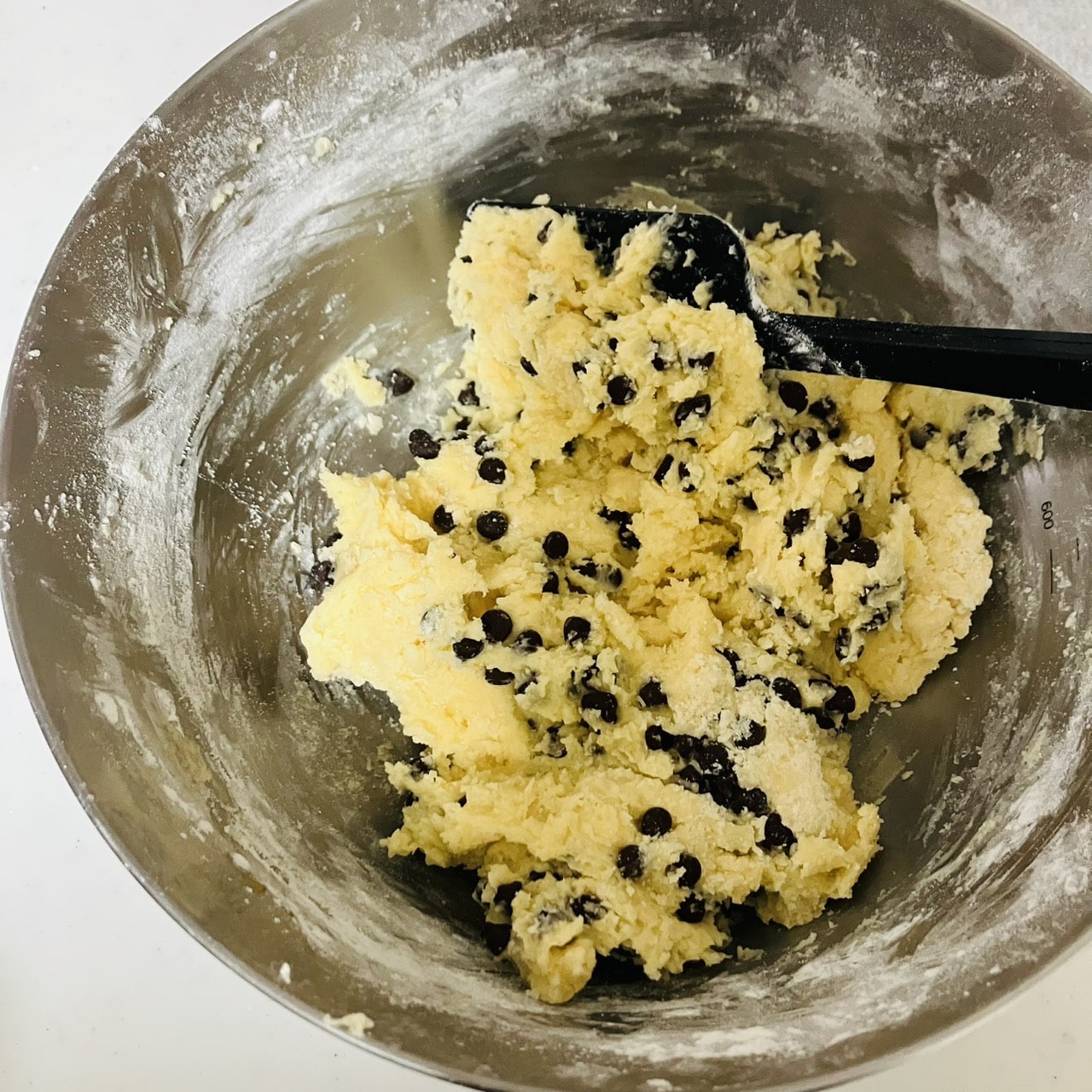 バター、砂糖、卵、薄力粉、チョコチップの順で混ぜるだけ。