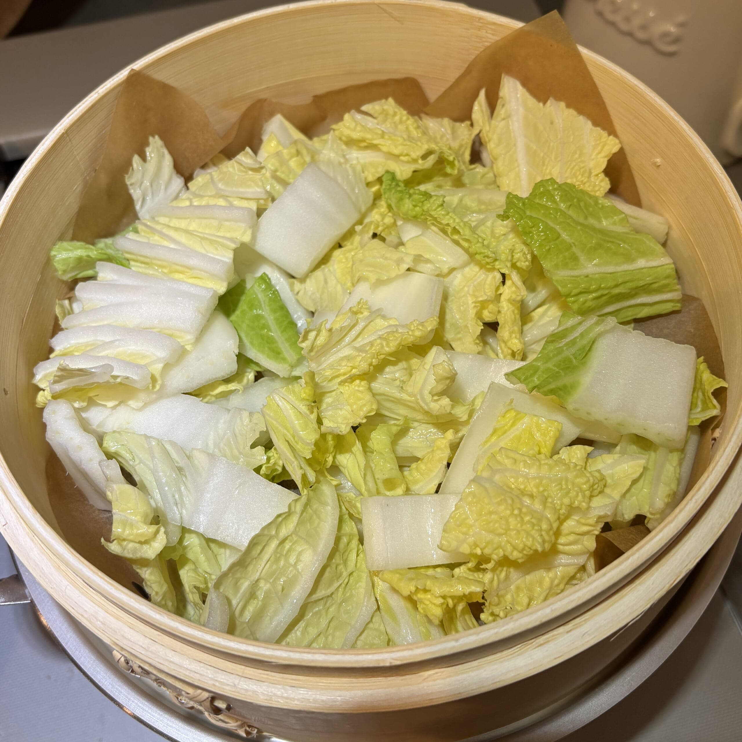 せいろに白菜敷き詰める