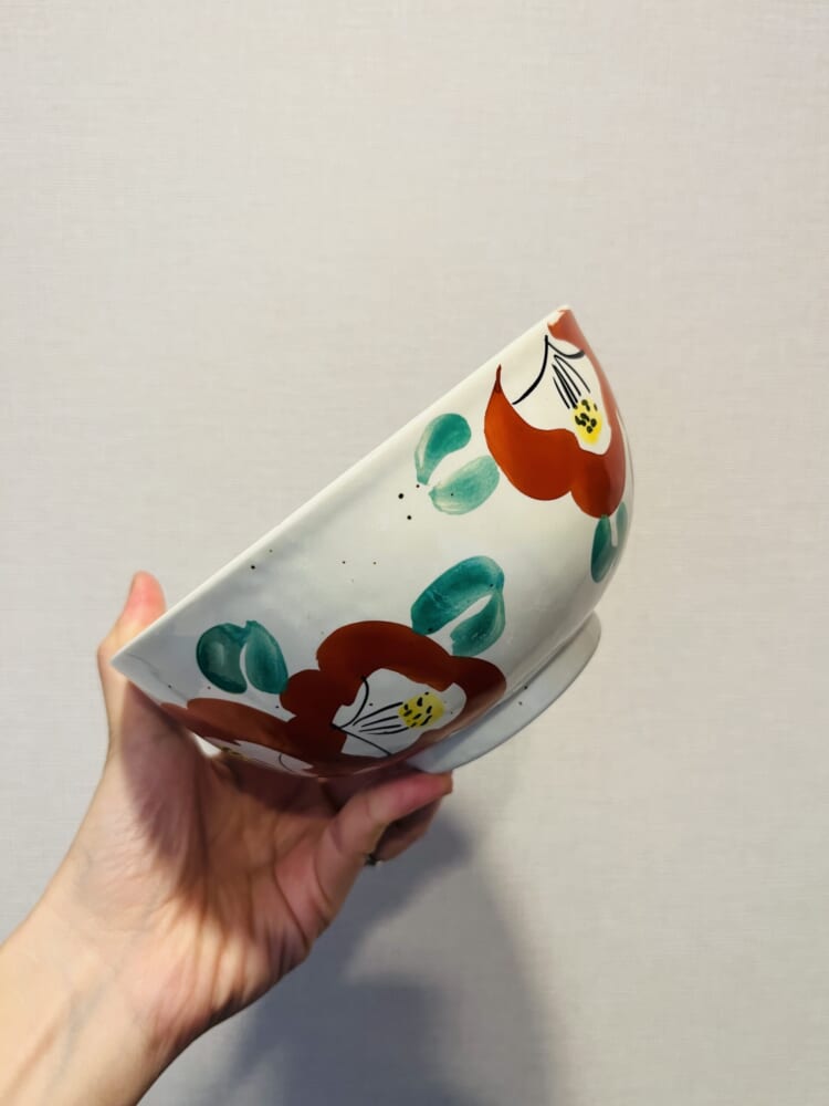 我が家には赤色の食器はほとんど無く、なんだかとっても新鮮。椿の絵柄も華やかで可愛らしくて気に入っています。
