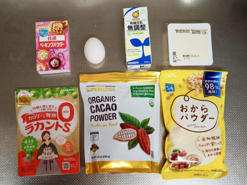 「おからと豆腐の濃厚チョコブラウニー」として紹介されていたレシピで、使う材料はこちら。