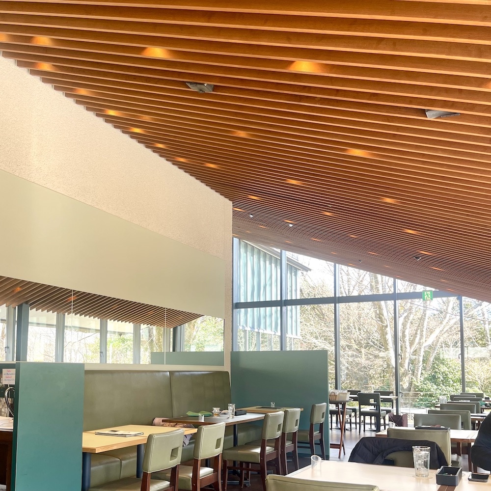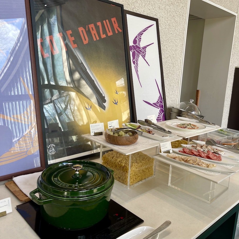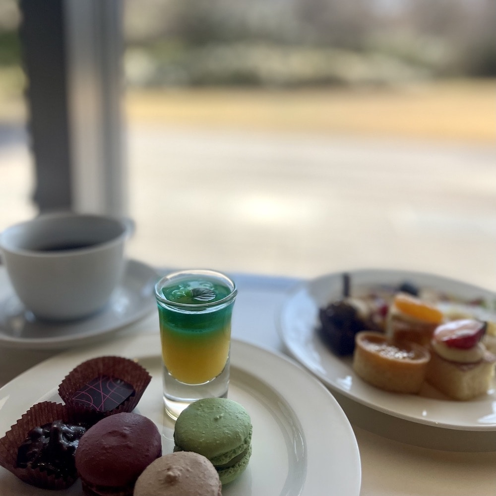 敷地内にレストランとカフェが併設されているので、まずは腹ごしらえ。ラリック美術館といえば、ルネ・ラリック内装の豪華列車でティータイムができるサロンも素敵なのですが、今回は箱根エモア・テラスでビュッフェスタイルのランチを利用することに。