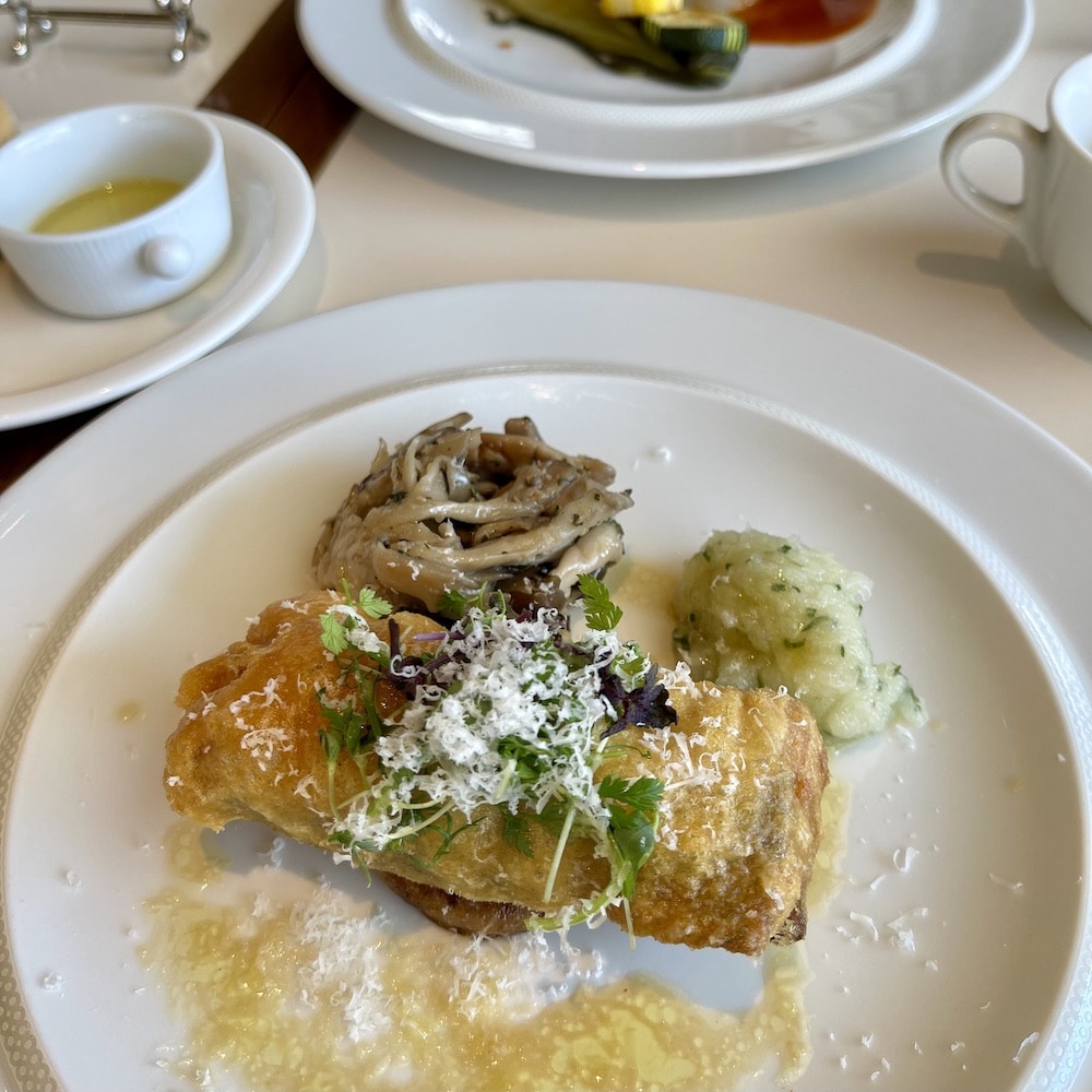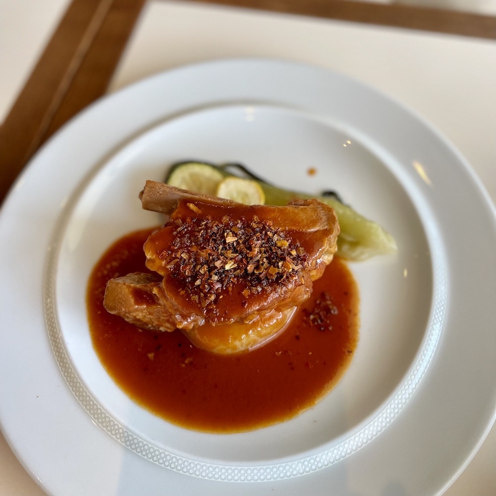 メインディッシュは、3種類あり、どれもラリック家伝統のレシピから着想を得たメニューだそう。夫と私で、それぞれ魚とお肉、違うメニューを選びました。