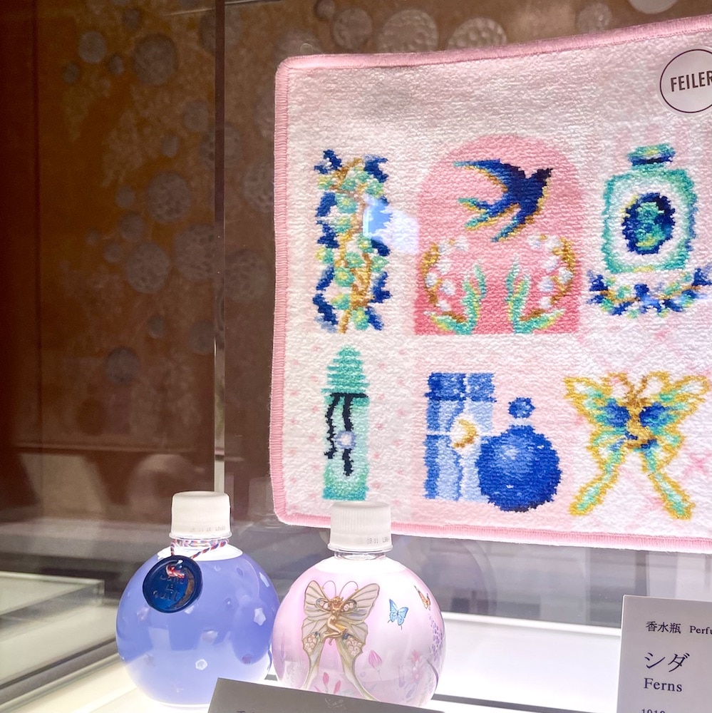 さらにさらに、なんと、FEILER(フェイラー)とのコラボ商品があり、ラリックの香水瓶やブローチなどがデザインされたタオルハンカチの可愛さに釘付け! ミュージアムショップで悩んだ末、買わずに帰ったのですが、やはり購入しておけばよかったかも〜とちょっぴり後悔しています。