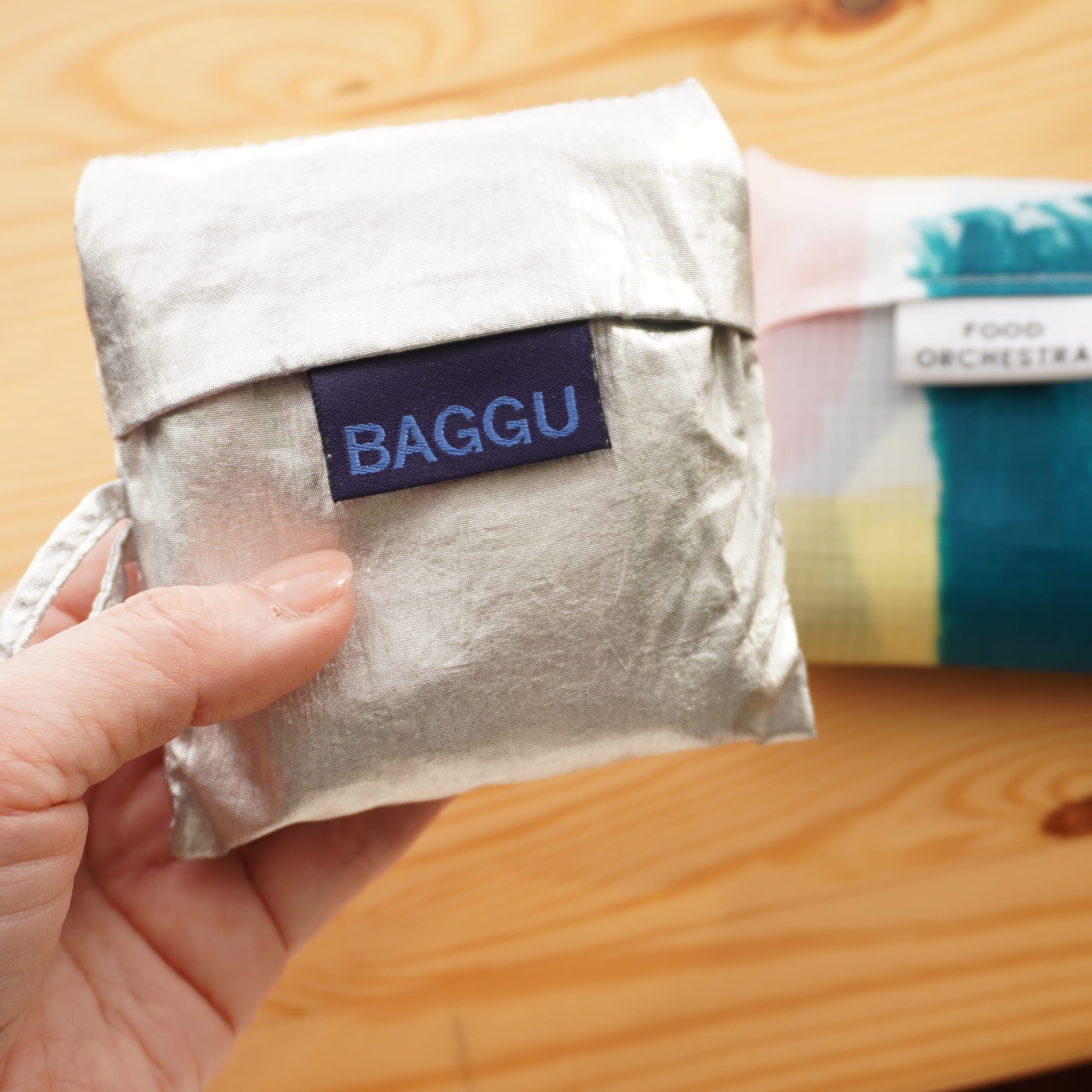 BAGGUのエコバッグは100人隊で愛用されてる方も多いですよね♩シルバーのエコバッグは、どんなコーデにも合うからよく使うアイテム。