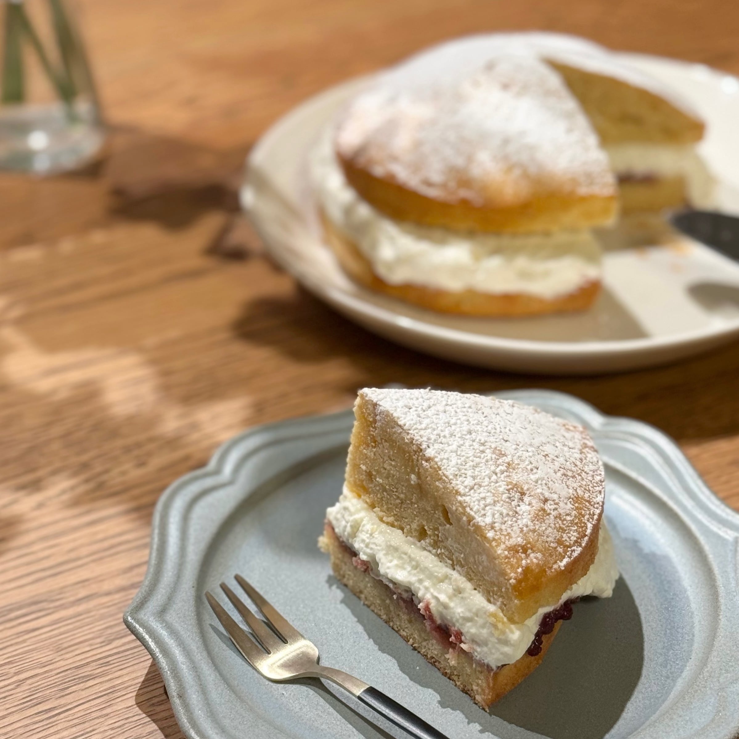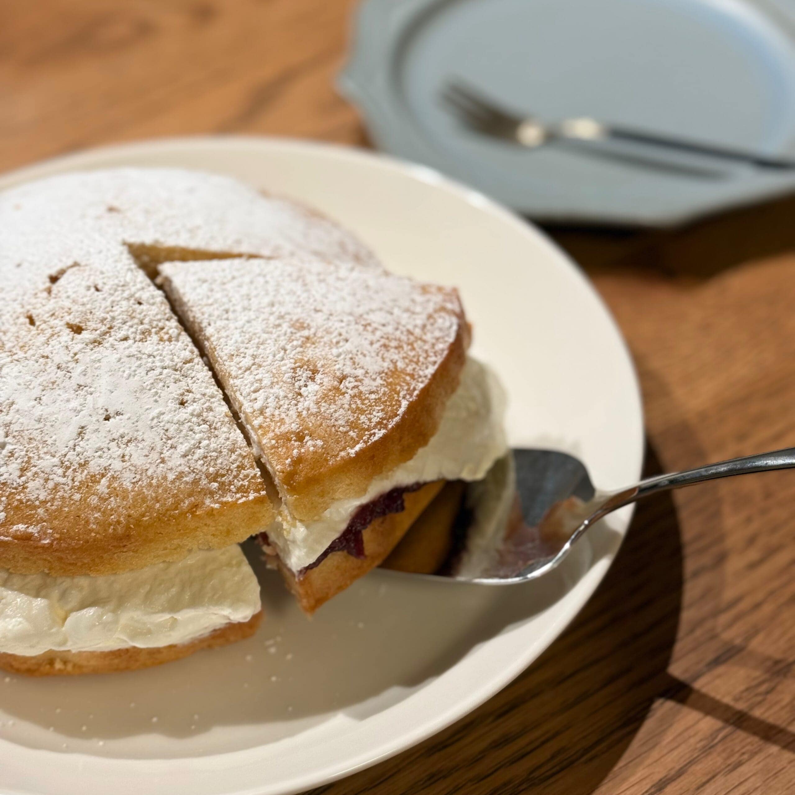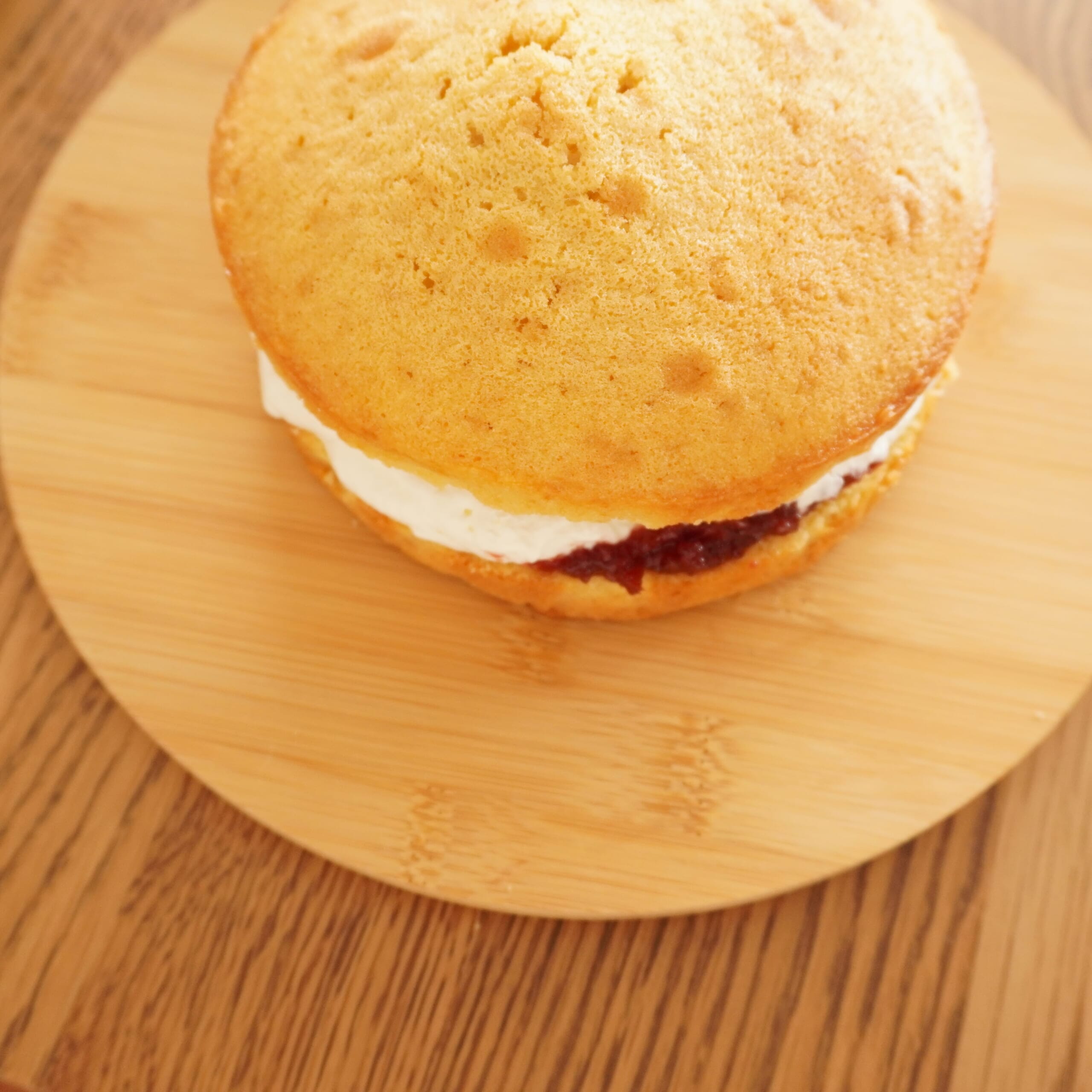 はじめて作ったヴィクトリアケーキ。いろいろと反省点もありますが美味しく出来上がったから良しとしましょう◎