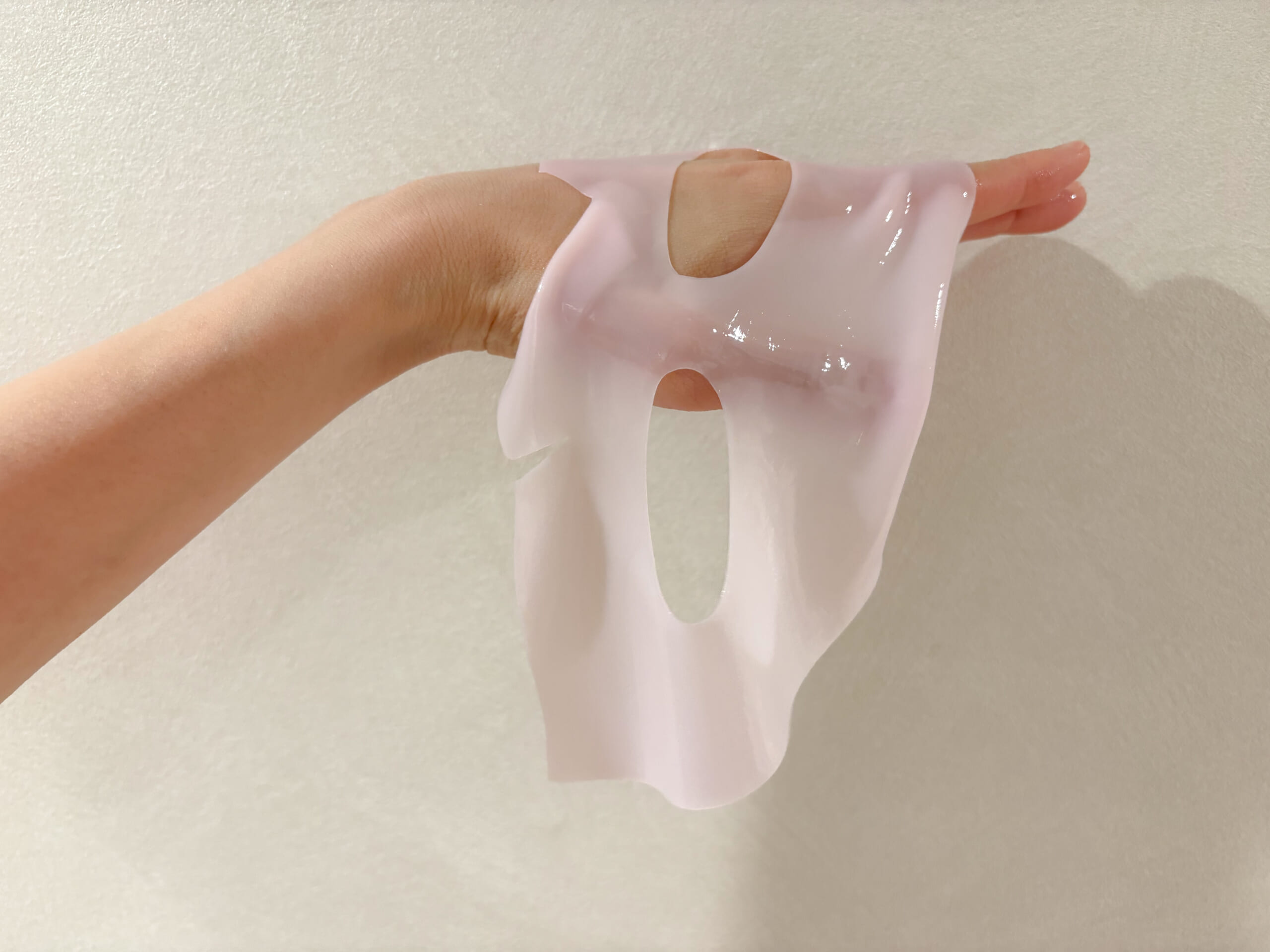 1時間ぐらい肌にのせていると、ピンク色のパックが白く、そして最終的には透明に変化していく不思議なパックなのです。初めての感覚でした。