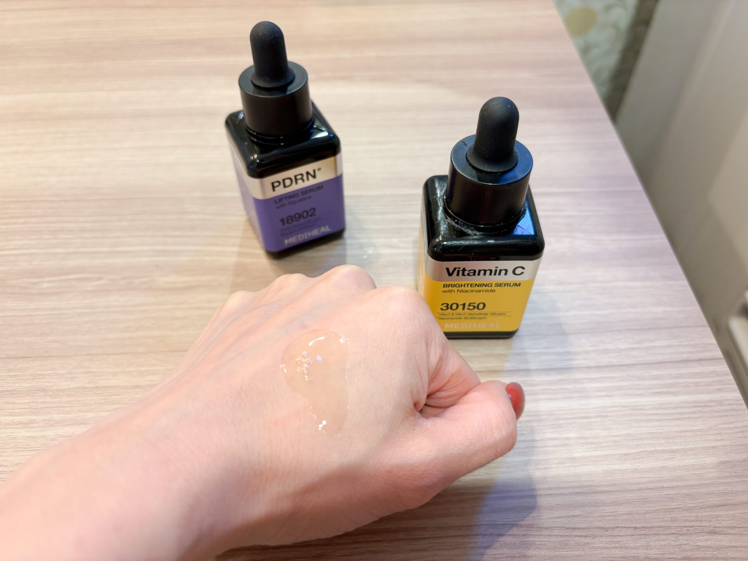 こちらも写真で伝わりますでしょうか。とろみのある美容液ですが、浸透しやすくてベタつかず気持ち良く肌に馴染みます。