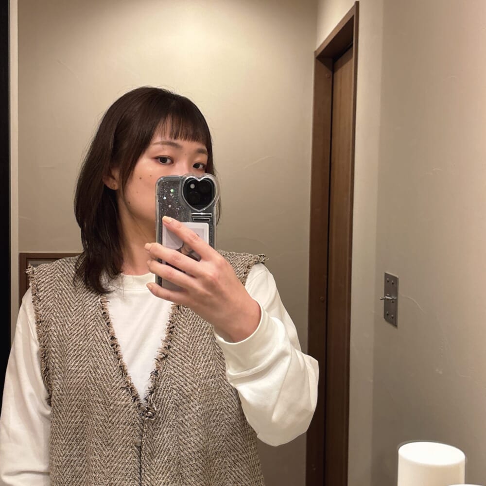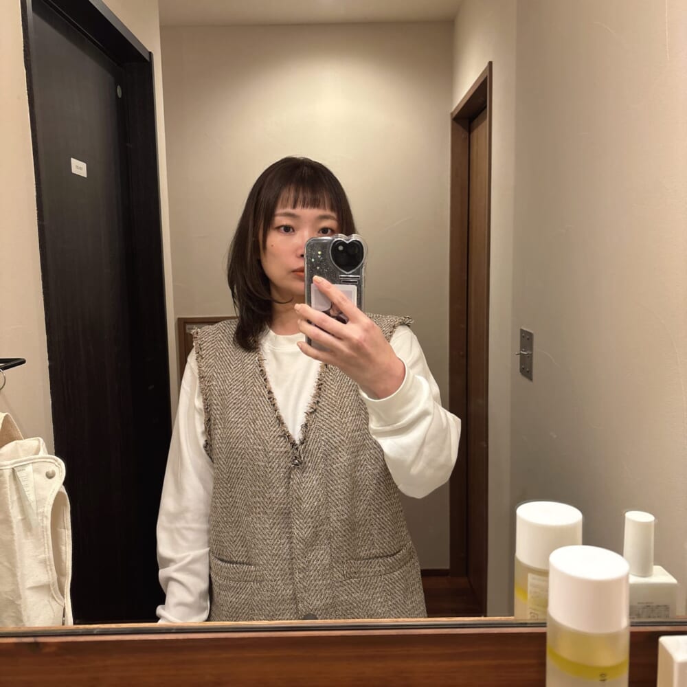 引き続き、くせ毛を生かしたくびれヘアにして守りに入っていますが、どうしても変化させてたくて前髪だけオン眉にしてみた。