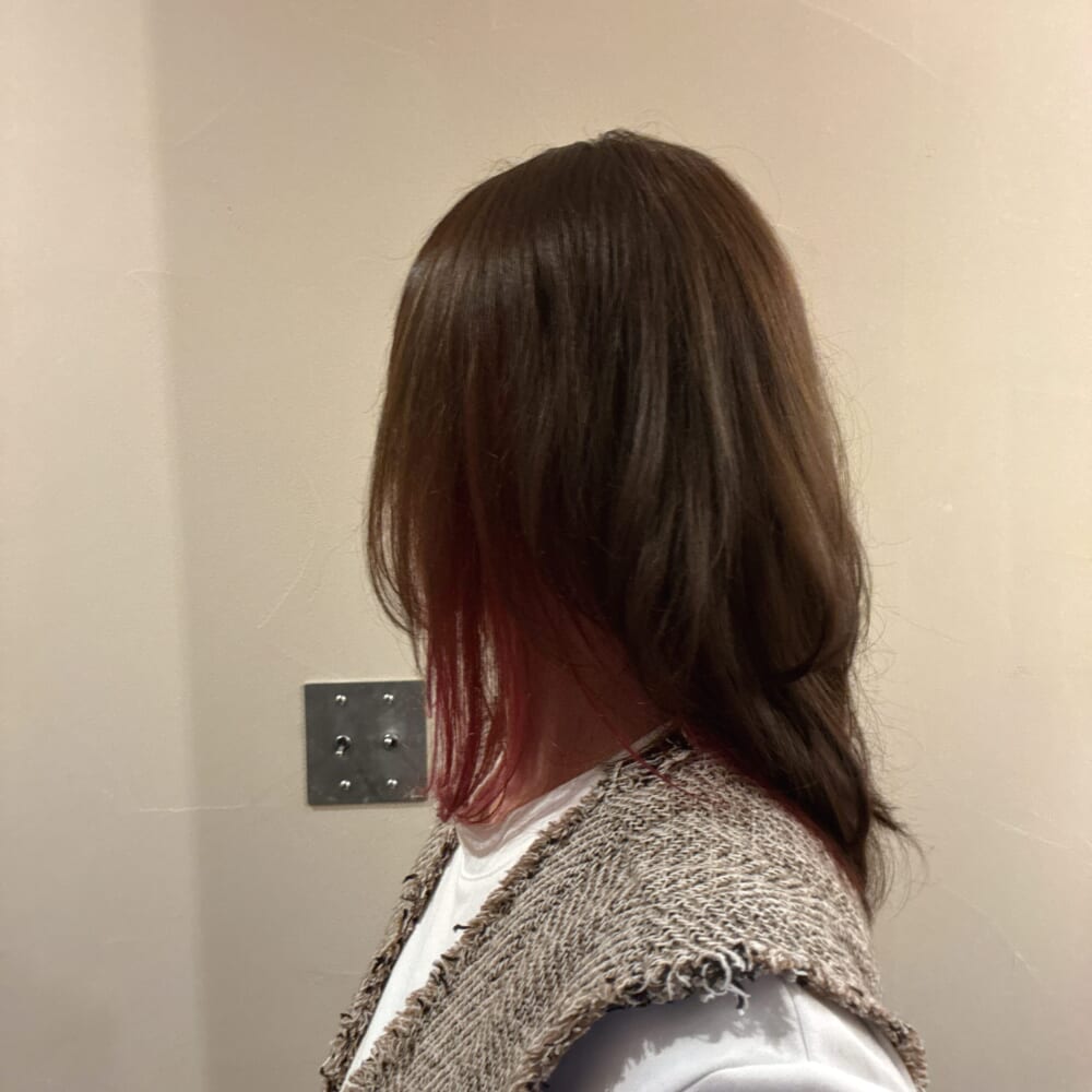 右側だけ(写真は反転してる)、アクセントカラーでピンクが入っている。ピンクなんだけど、入れた直後は赤に見えるので、これまた職場で「うさこさん、それロックバンドみたいだね!!!」と絡まれました😇おい、書類作らないぞ??事務員の逆襲