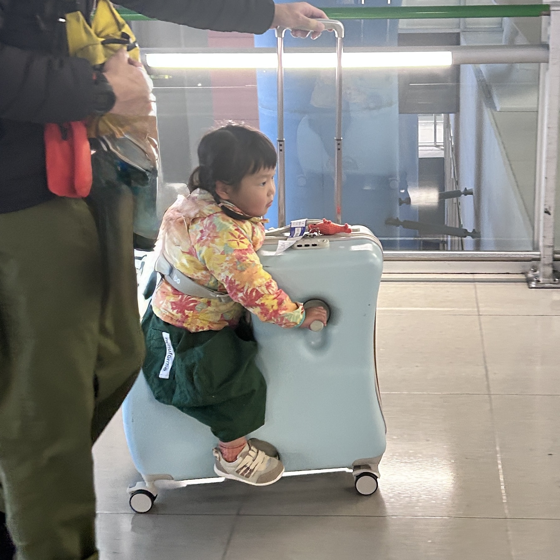 今回は車移動がメインなので、ベビーカーは持っていかずだったので、過去の旅準備クリップでチラリと紹介した、子供が乗れるキャリーケース”キッズトラベル”を持っていきました。