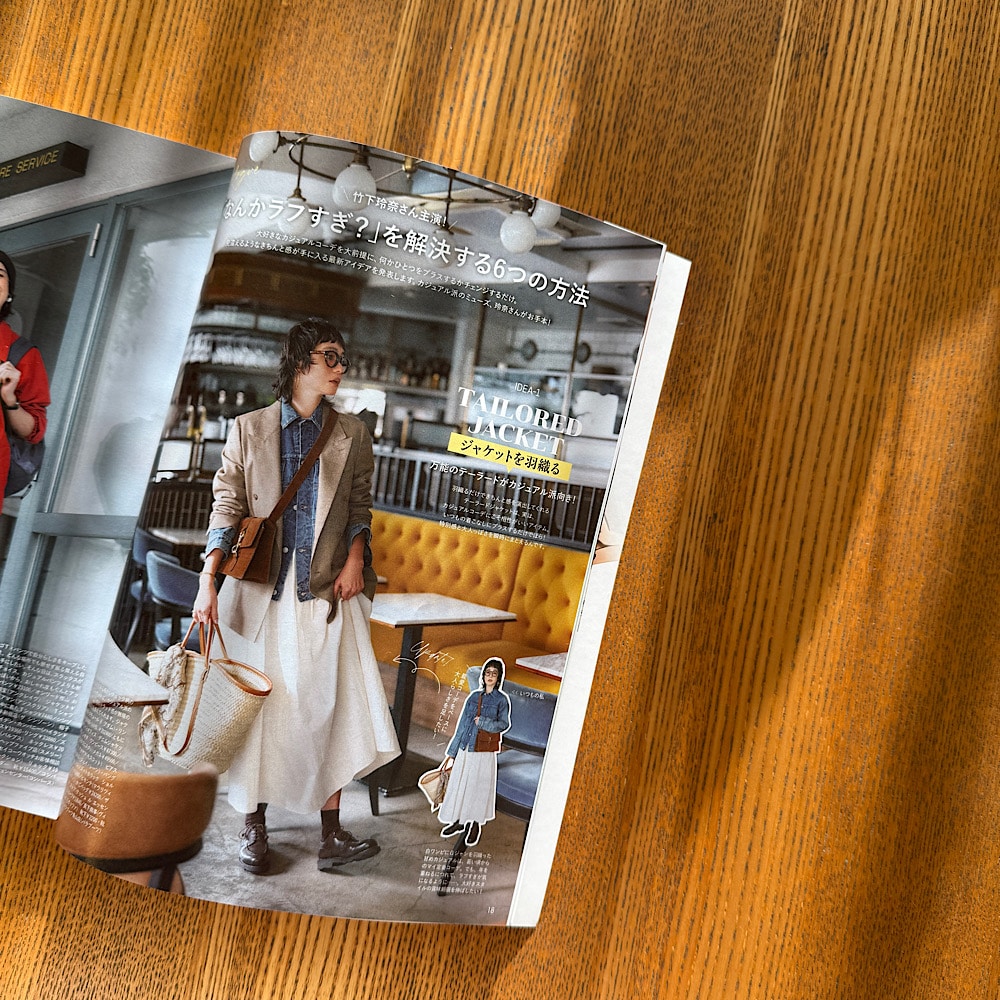 今回は足元とバッグを黒で引き締めましたが、掲載コーデのように茶系でまとめると、可愛げが出ますね♪