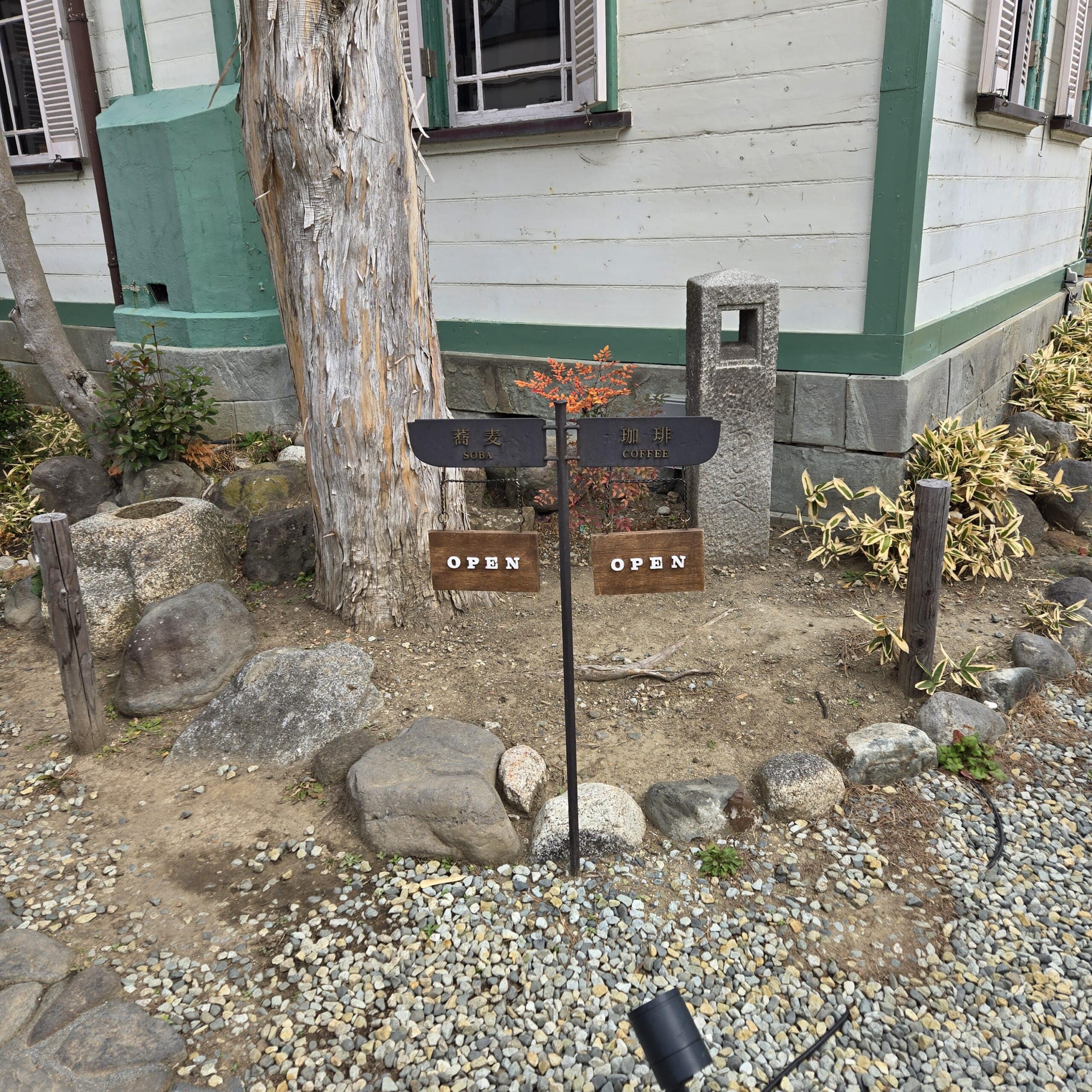 左に行けばお蕎麦、右に行けば珈琲。この看板?もとっても可愛いい🥰