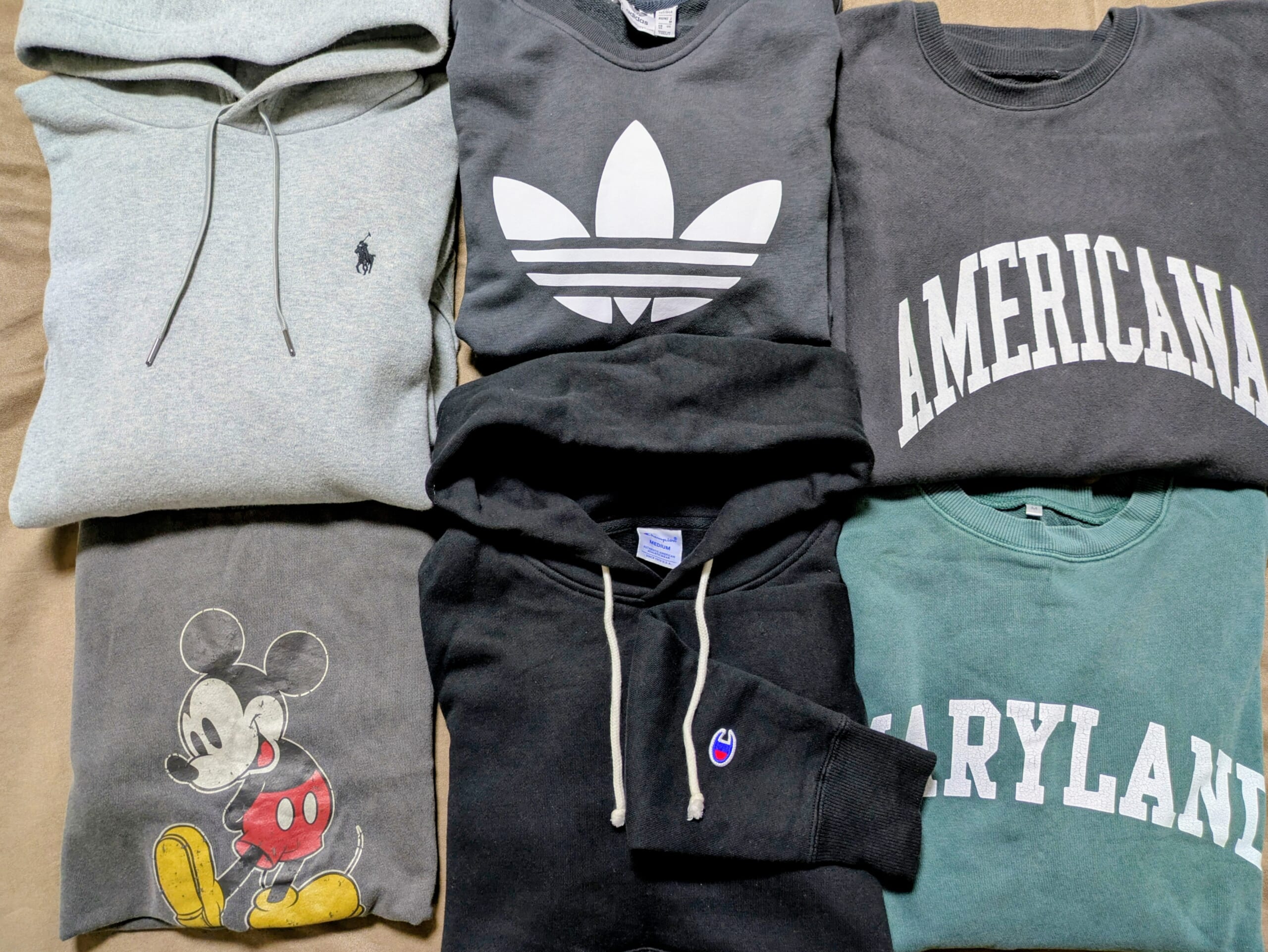 私はスウェットが好きでいくつか持っていますが、普段は重ね着せず1枚で着ることが多いです