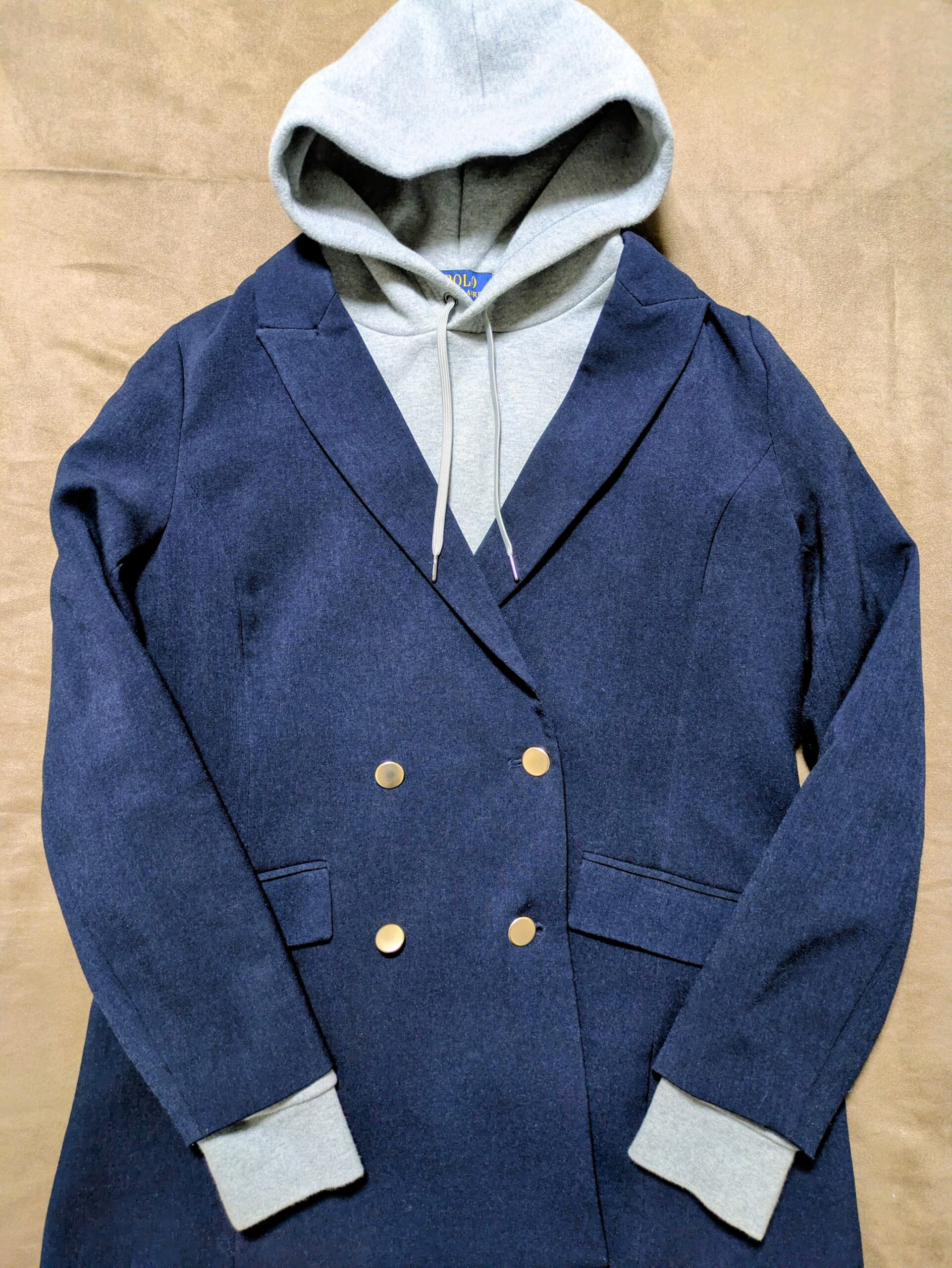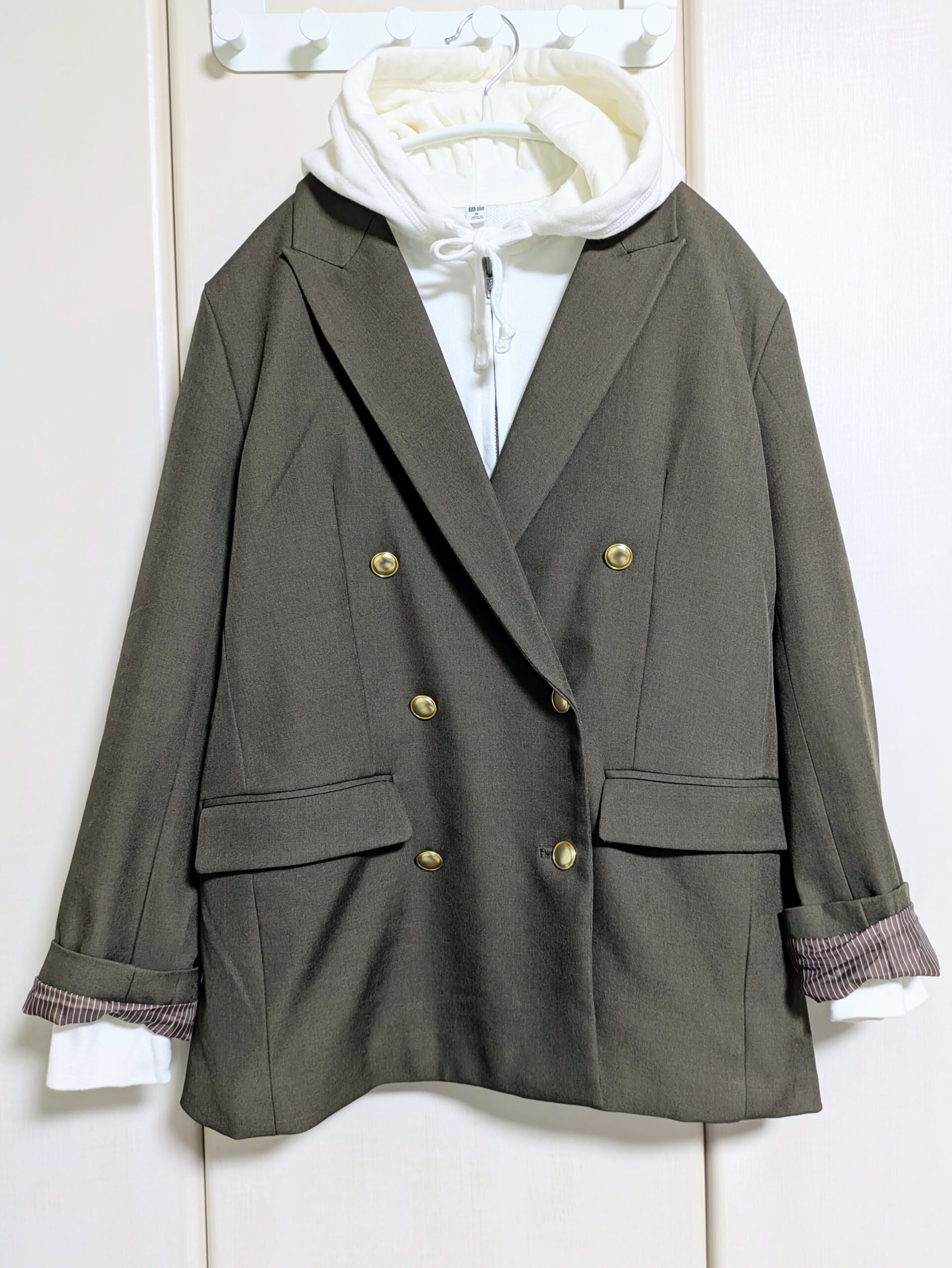 私もジャケット✕パーカが好きなので、職場ではこんなコーデで仕事しています(カジュアルOK!スニーカーOKな職場です😊)