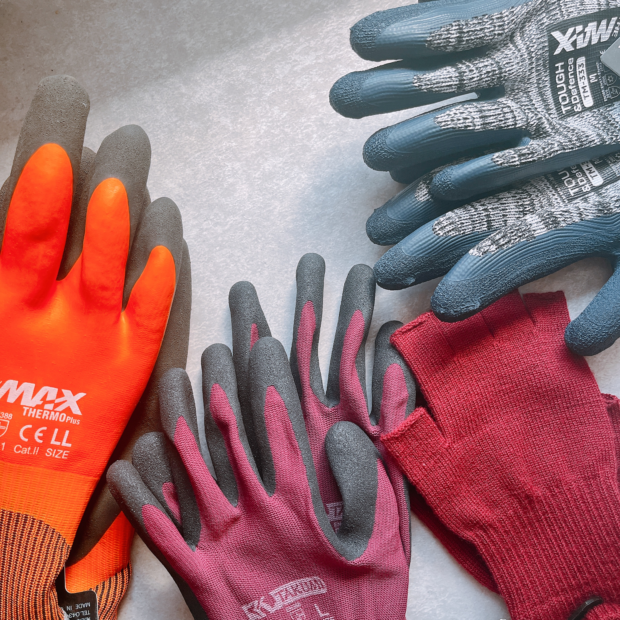 いい仕事をしてくれたのが、指先が出るタイプの手袋と作業用ゴム手袋。