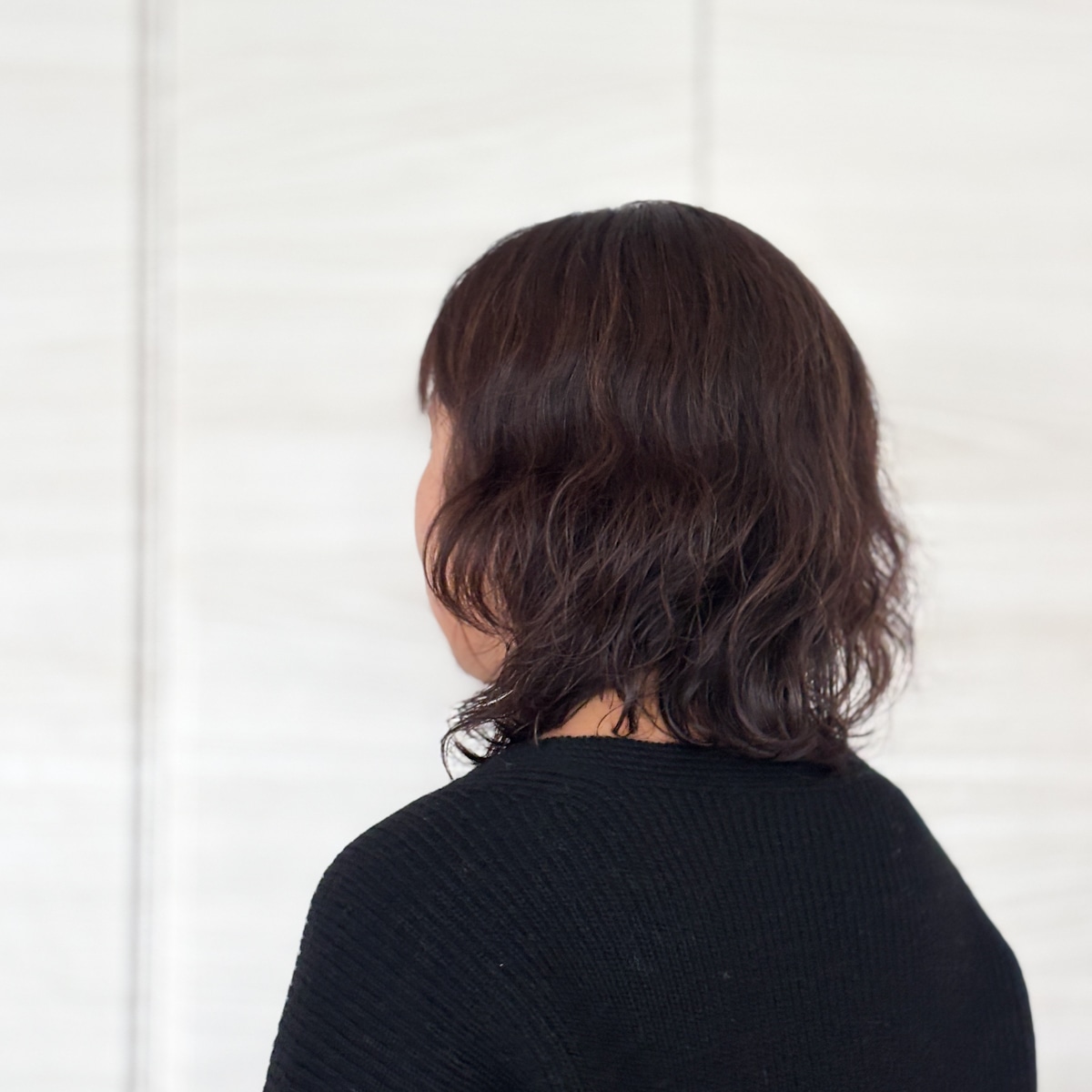 少し明るめのカラーにして、白髪が馴染むように色を入れてもらっています。ハイライトは入れていません。