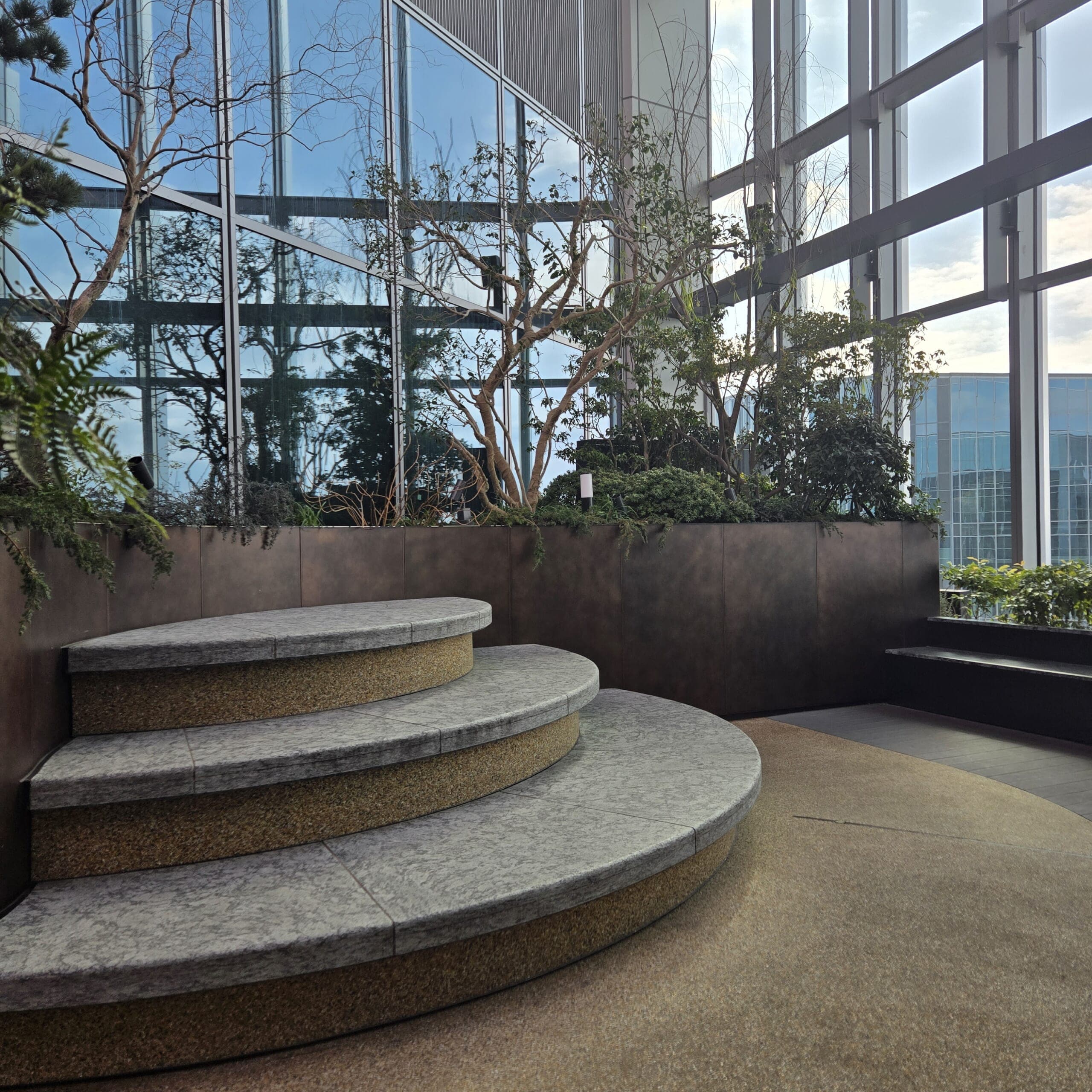 ノース棟の28、29階の飲食&庭園フロアになるのですが、庭園エリア?の部分だけは、何と朝の8:00~夜24:00まで入場可能✨なので、ランチ前の朝散歩や、夜は夜景を見に行けたりとても使い勝手の良いスポットなのです🥰