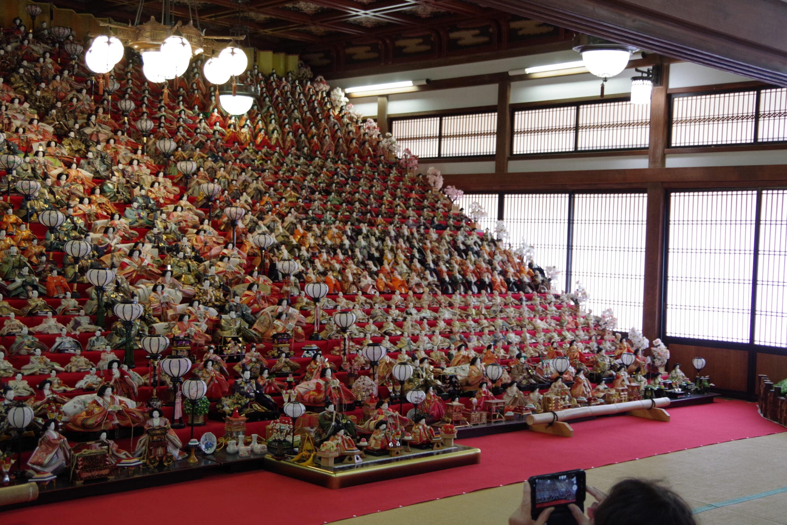 この32段、1200体の人形は、全国から持ち込まれた人形供養のお雛様とのこと。もう一度活躍の場を…と飾られているそう。みなさんとても華やかです。
