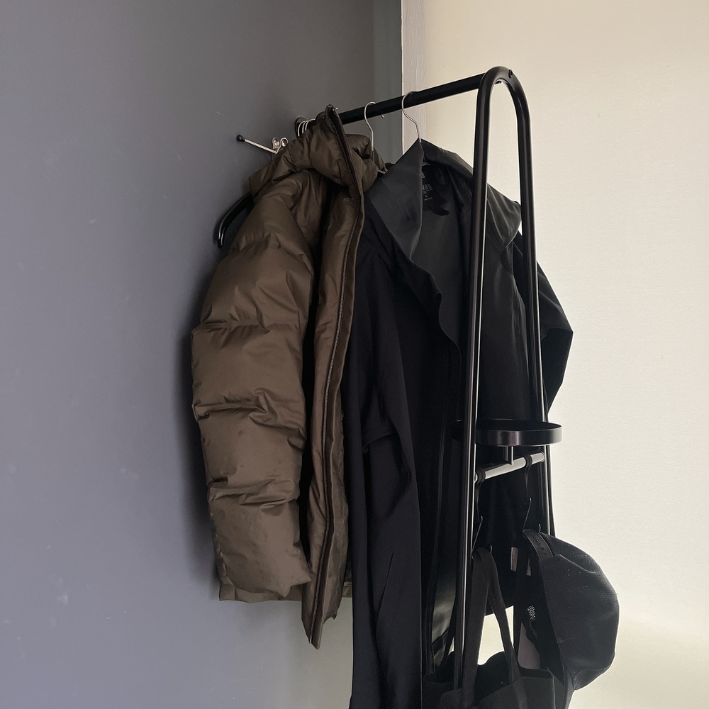 スペースを大きく取らず、上着をかけたり鞄を置いたりできるので、帰宅後はまずここへ。