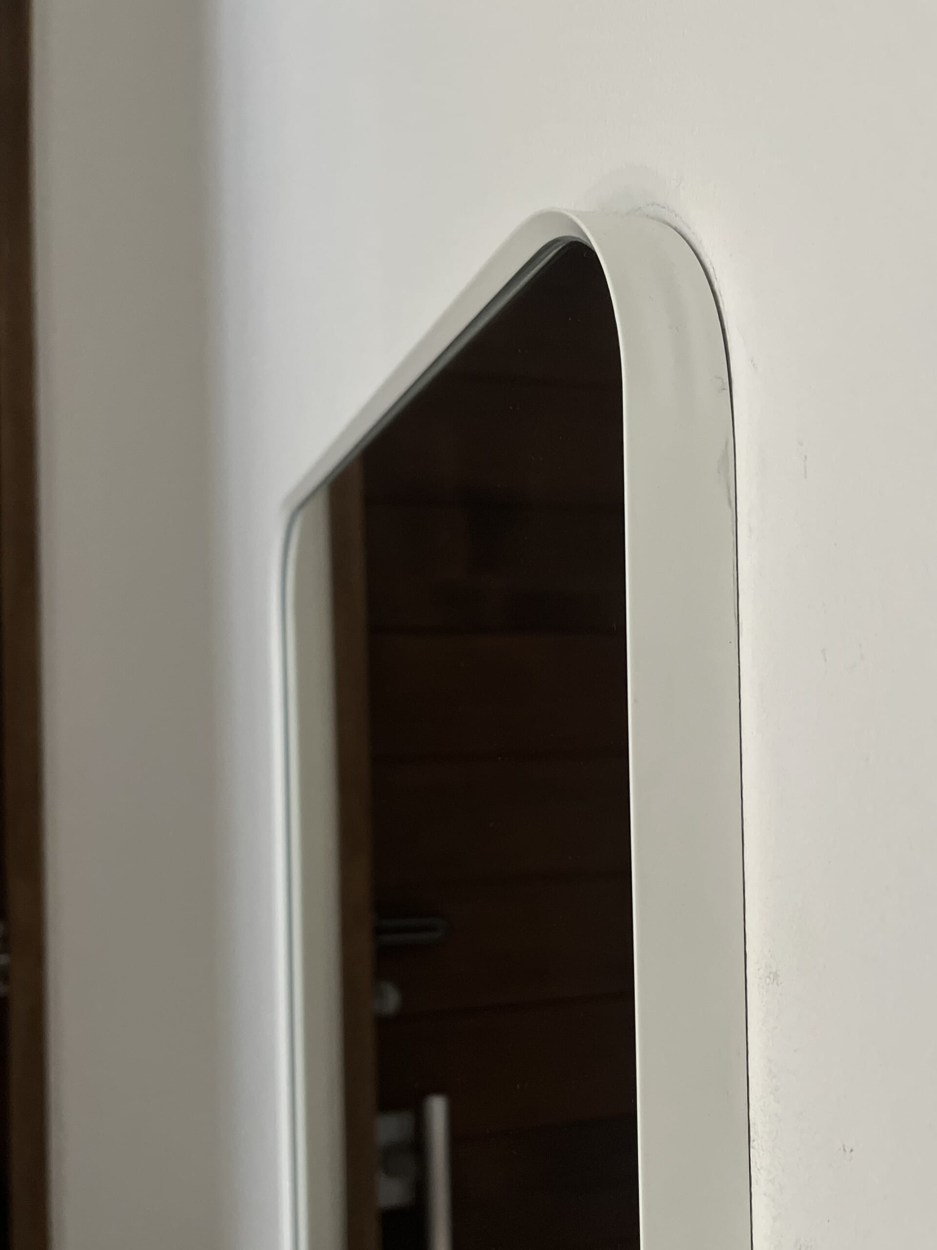 ミラーの裏には4か所ネジを引っかけられる溝があり、付属のネジはなかったので自宅に合うものを壁に取り付けました。