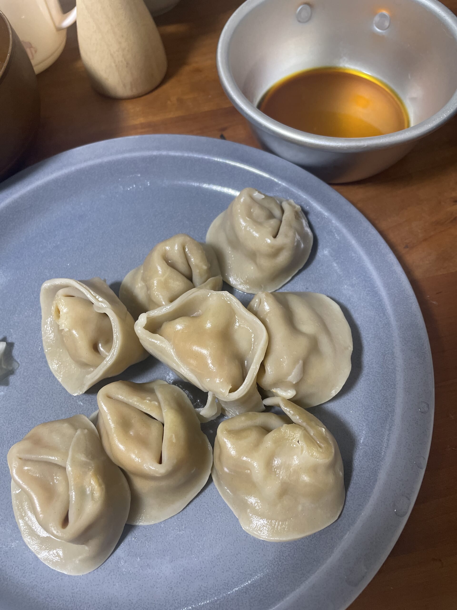 水餃子を帰りにテイクアウト。(夕食に水餃子2連チャンでも全然OKな美味しい餃子!子供には、あまりクセのない、「大根と搾菜」が好評でした。)