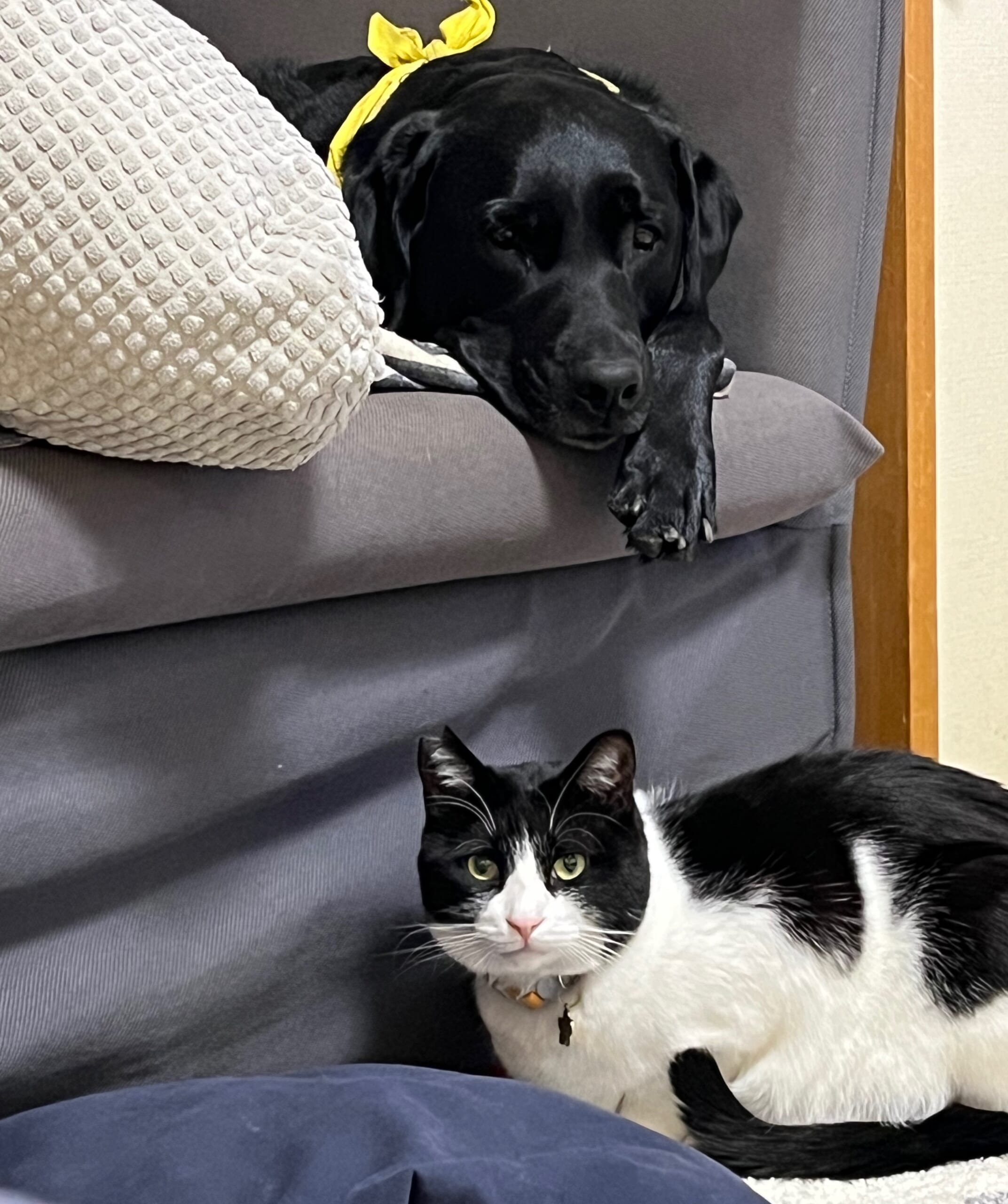 実は猫ちゃんは苦手でした。はじめて夫の実家に行った時に、その頃に飼っていた五郎くんにシャーっ!と引っ掻かれて泣。10:0の割合で圧倒的な犬派だったんですが、ひょんなことからパン太郎を迎えて、姉妹ニャンズまで増えて。すっかり猫ちゃんたちの虜です。もうこんなに愛らしくて、柔らかくて、かわいい生き物がいるのか!と。今はもう犬派でも猫派でもあります♡