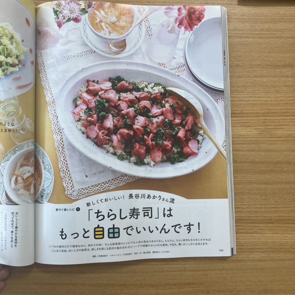 長谷川あかりさんの「ちらし寿司」特集もあって、組み合わせが斬新でどれも「つくってみたい!」欲が刺激されてます。