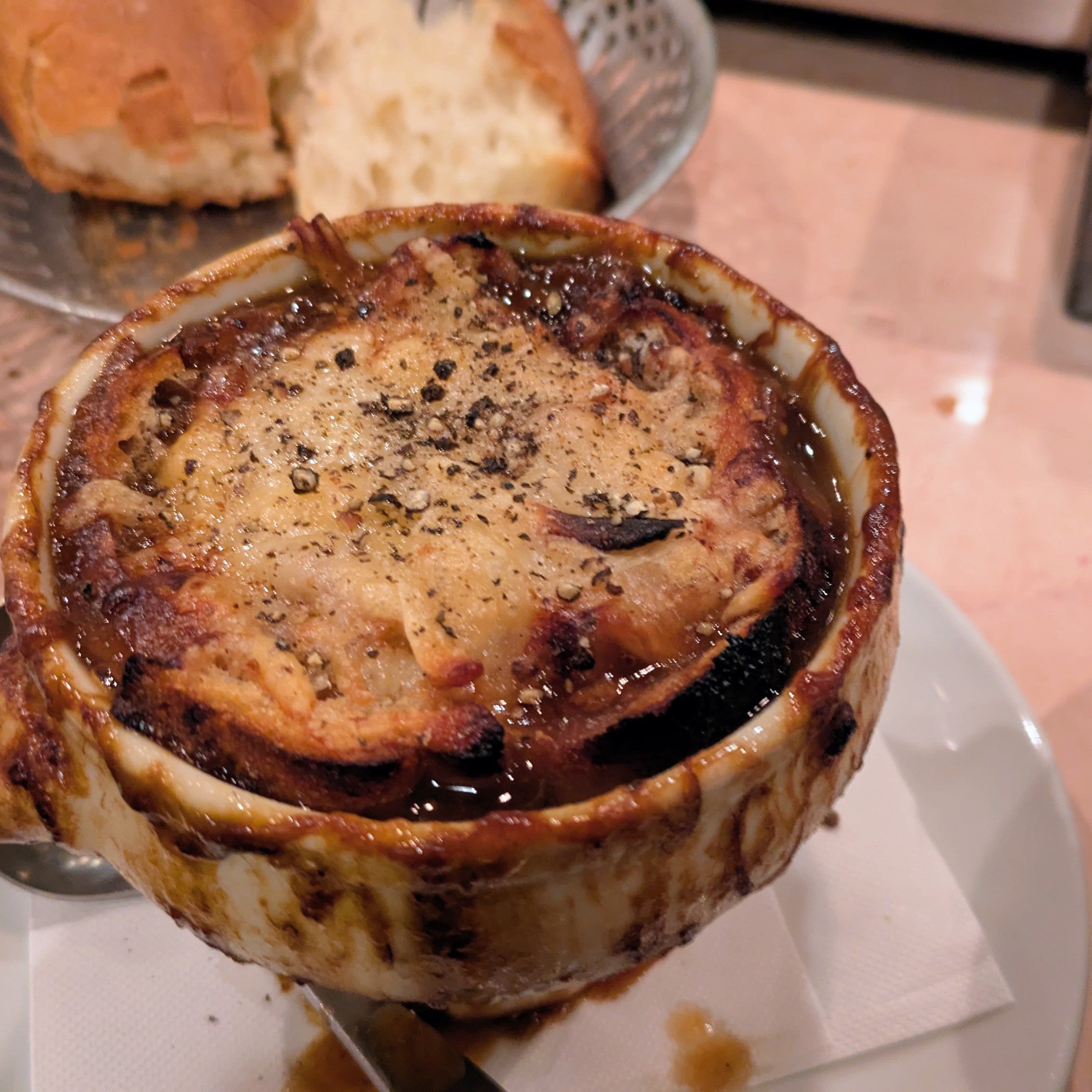 特に感動したのが、冬の定番「オニオングラタンスープ」。飴色になるまでじっくり炒められた玉ねぎの甘みと、とろ〜り伸びるチーズ。冷えた身体の隅々まで美味しさが染み渡る、至福の一杯です。