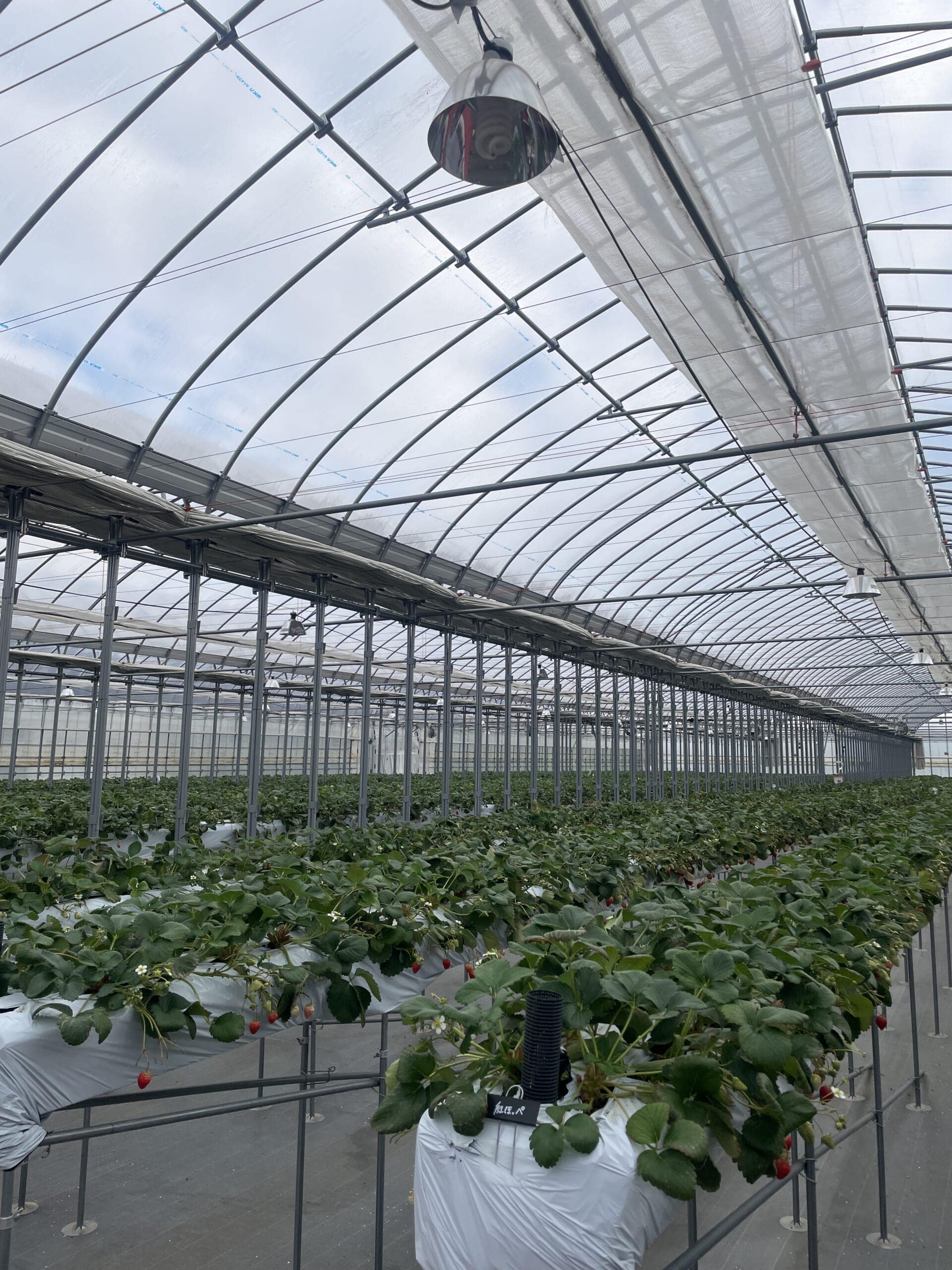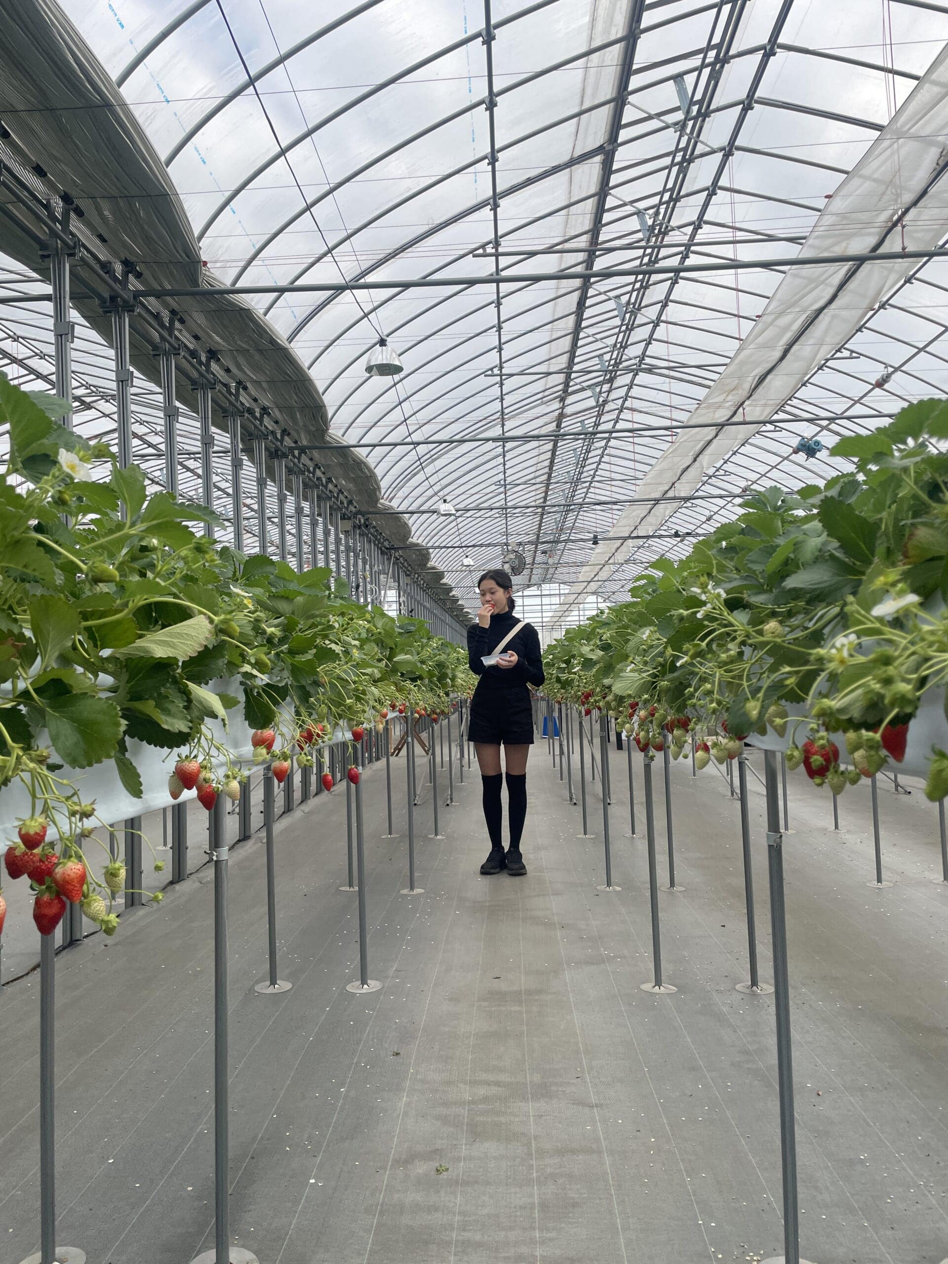 星空いちご園はとてもきれいで、いちごも腰を曲げずに取ることができます。