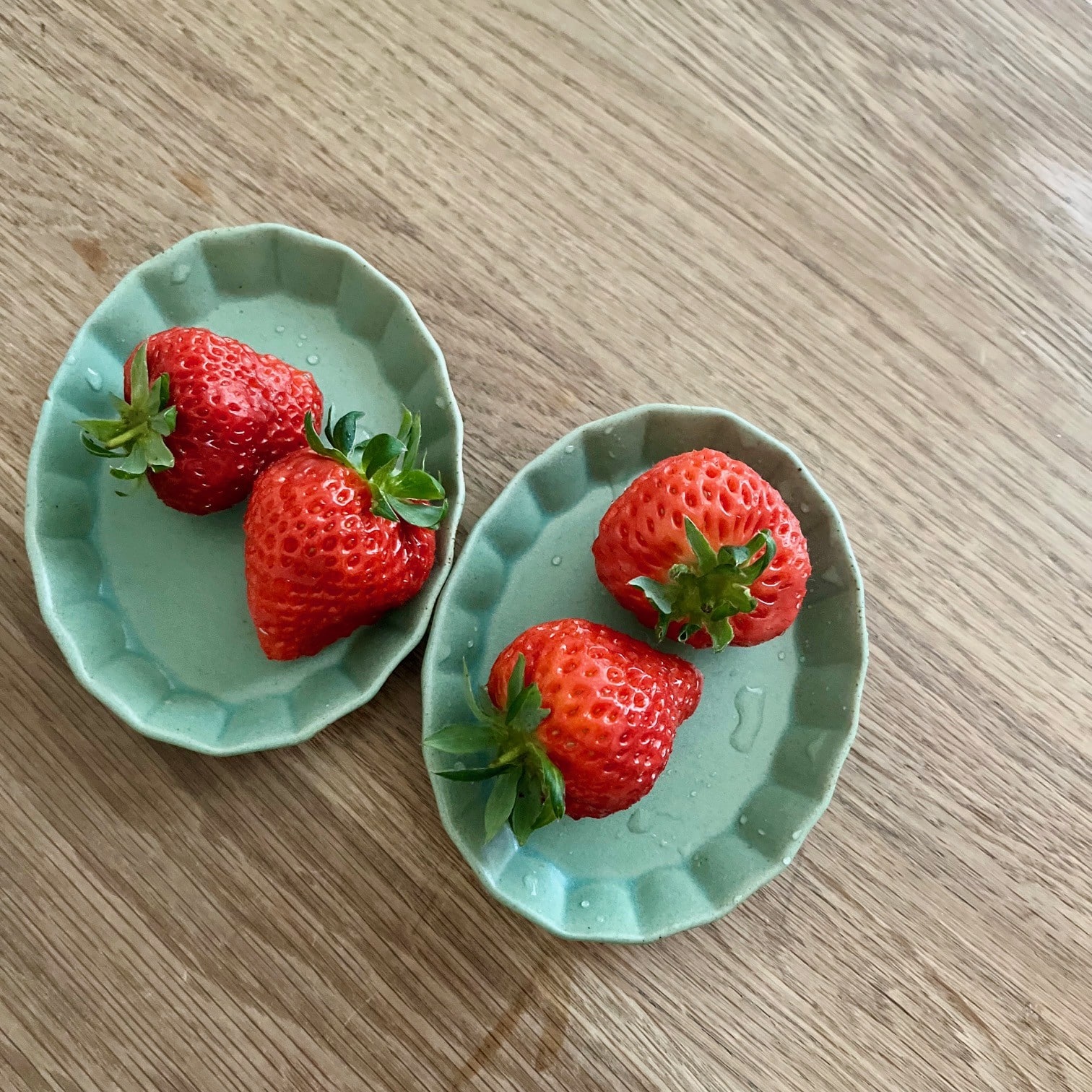 「越後姫」も並んできたし、いちご狩りにも行きたいなぁと🍓(子どもへのデザート用。器の水滴がすごい。なんて雑なんでしょう。笑)