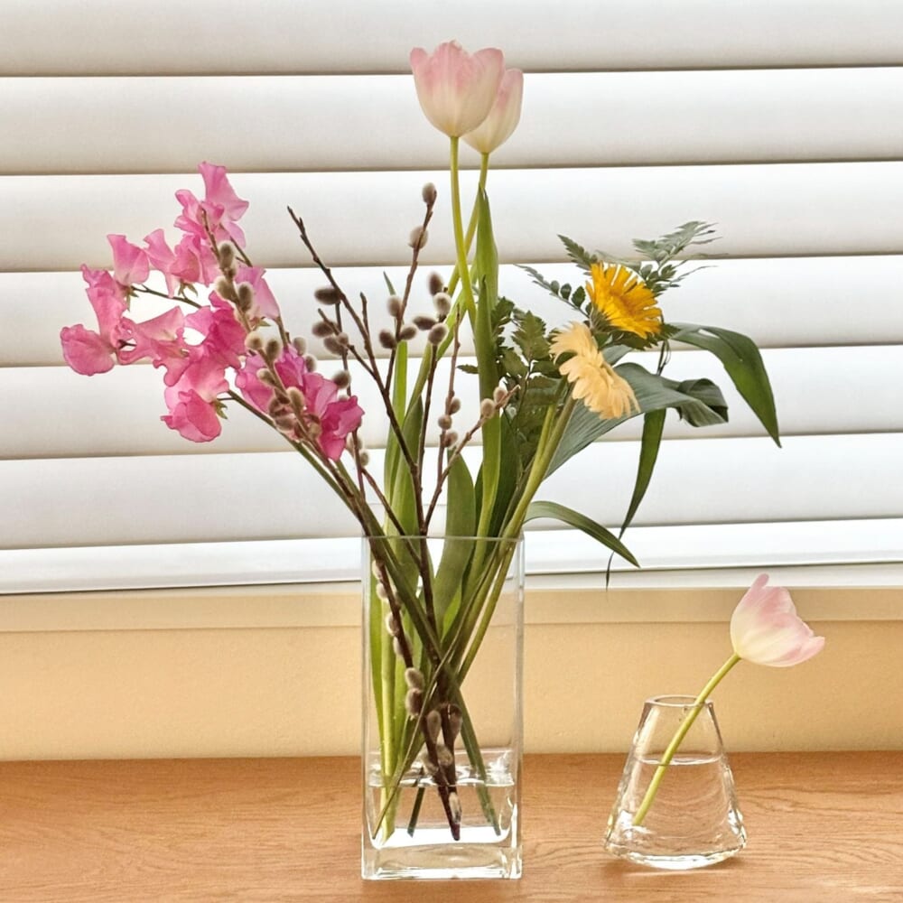 何かの拍子で折れてしまったチューリップは、処分せずに別の花瓶へ。