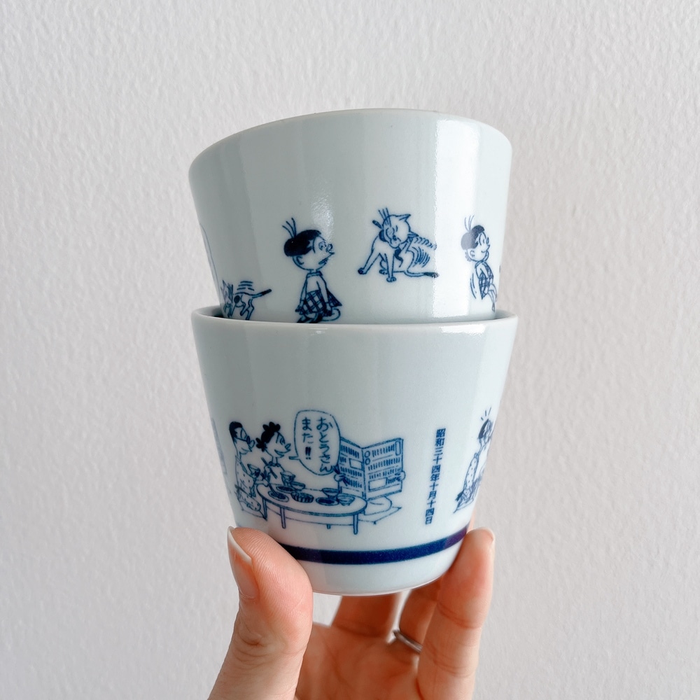 器をくるくるまわすとサザエさんの4コマ漫画が楽しめるデザインになっています。