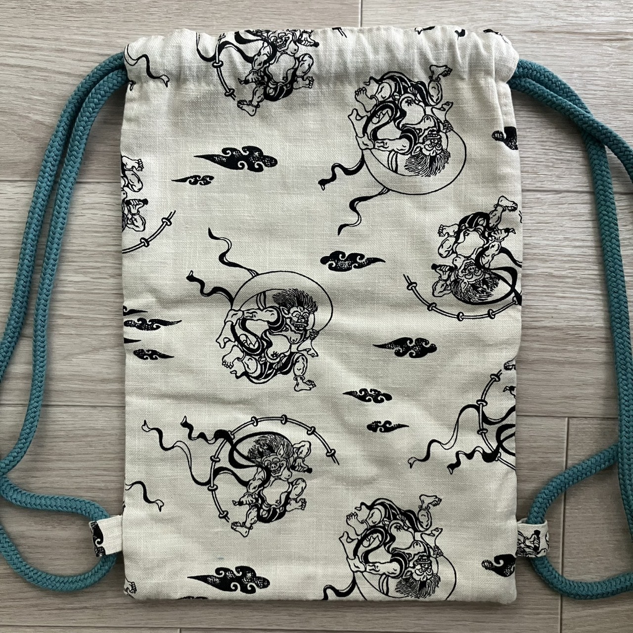 息子の一升餅を担ぐ時に使った袋も風神雷神柄で作って用意するほど。(余った布で作った違うサイズのポーチがあと3つほどあります 笑)