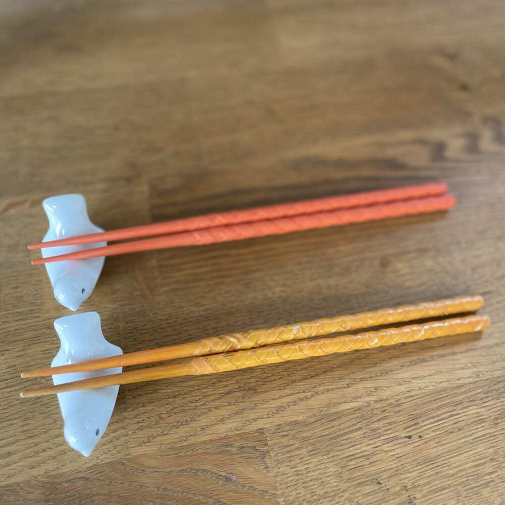 箸置きは、波佐見焼の白山陶器、DESIGN MORIのペアの箸置きです。