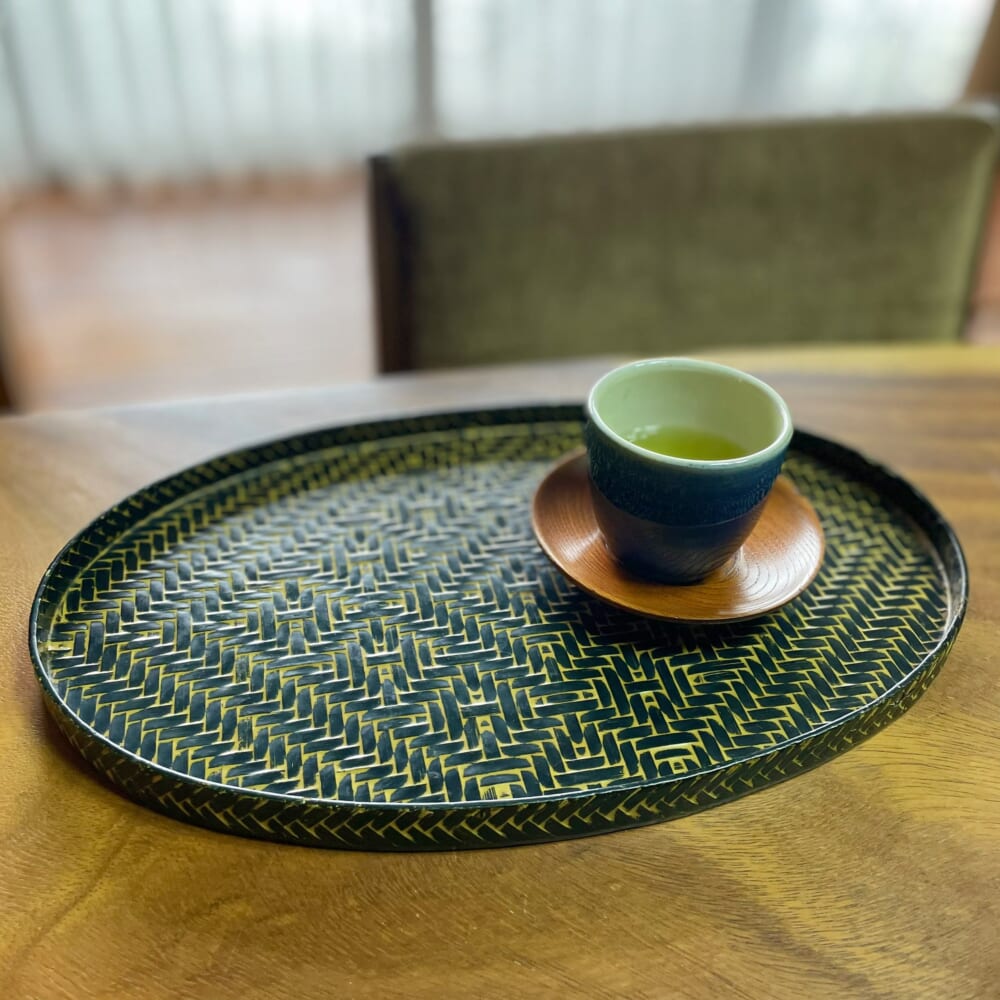 茶托は、極細の竹ひごを編み込んででいるのかな?気の遠くなるような繊細な工程です。