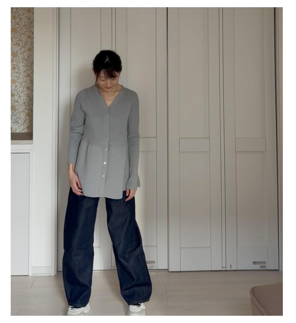 こちらのチュニックカーディガンと合わせてみましたが、4色(黒、黄色、白が他にありました)展開でしたが、まずはこちらの合わせやすそうなグレーを購入しました。