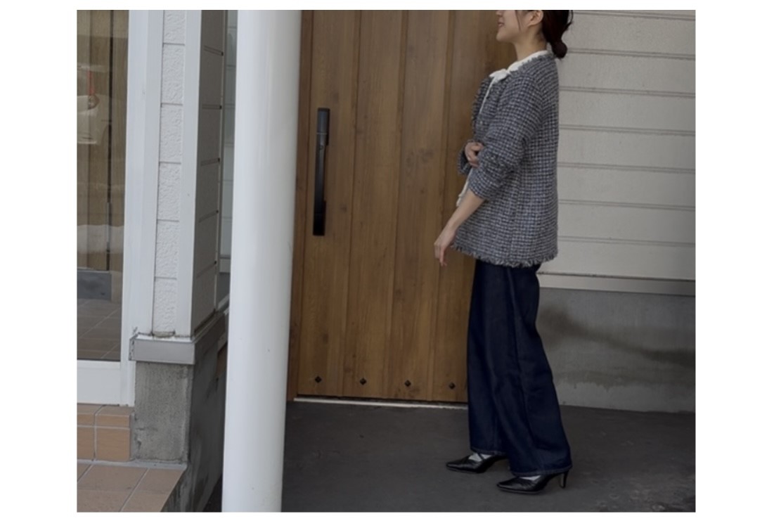 ヒールに合わせて、実家にあった母のツイードジャケットと合わせてみました。