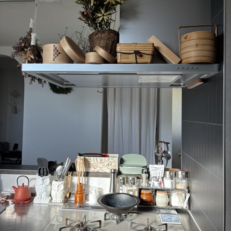 右側の壁を変えただけなのに、空間全体がキュッと引き締まってより好みの雰囲気に近づきました。