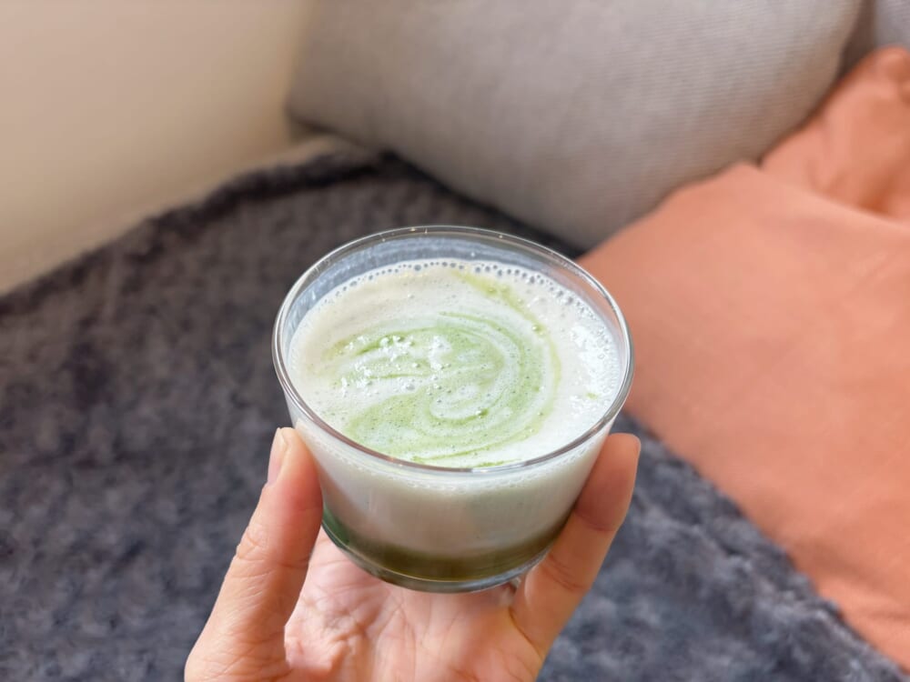 フォームミルクだと抹茶との層ができて、見た目も綺麗。