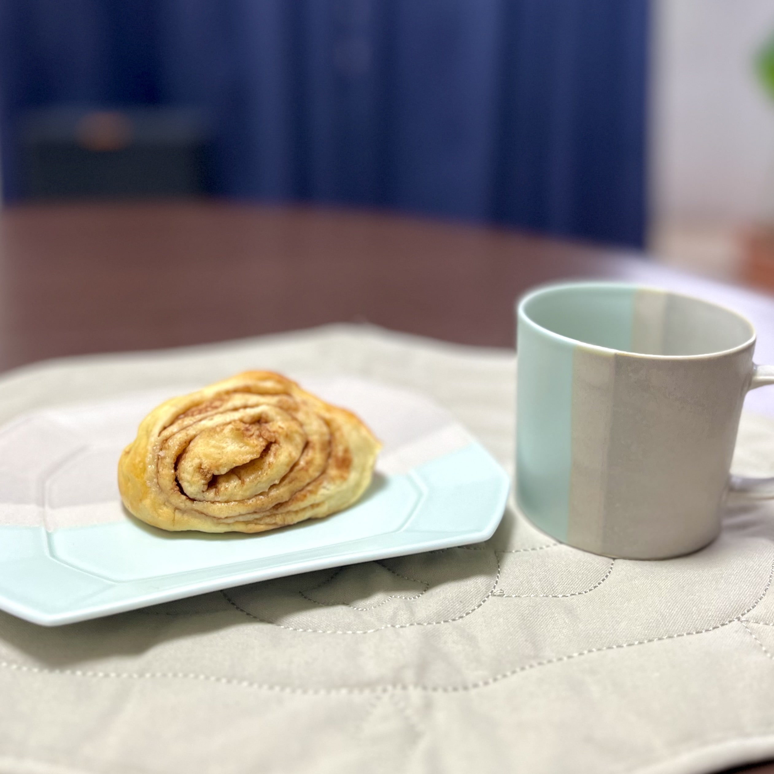 塗った後、朝ごはんにシナモンロールを食べました。