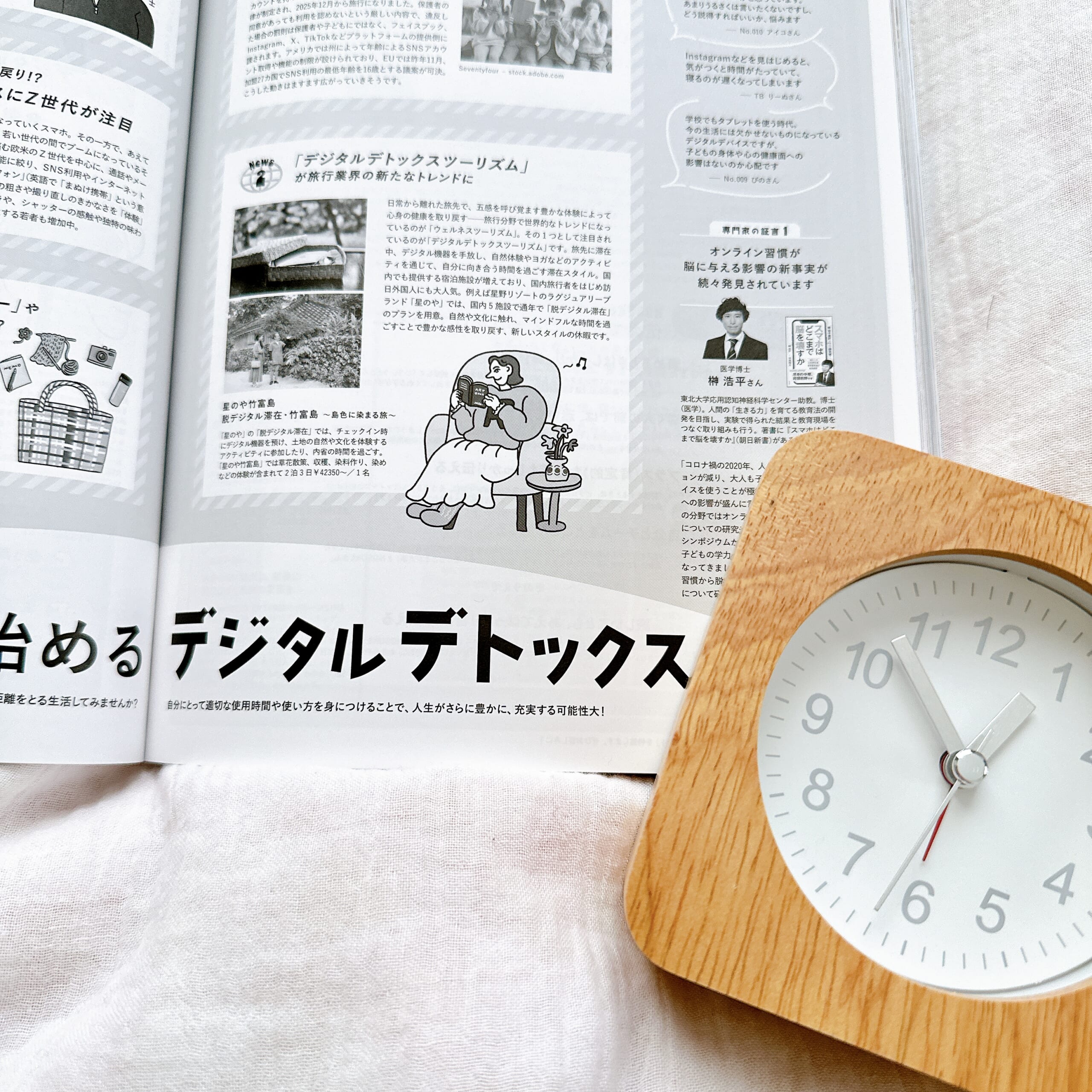 世界のデジタルデトックスに関するトピックスや、専門家が解説する気になるデジタル習慣が脳に与える影響、読者からの質問・回答が掲載されています。