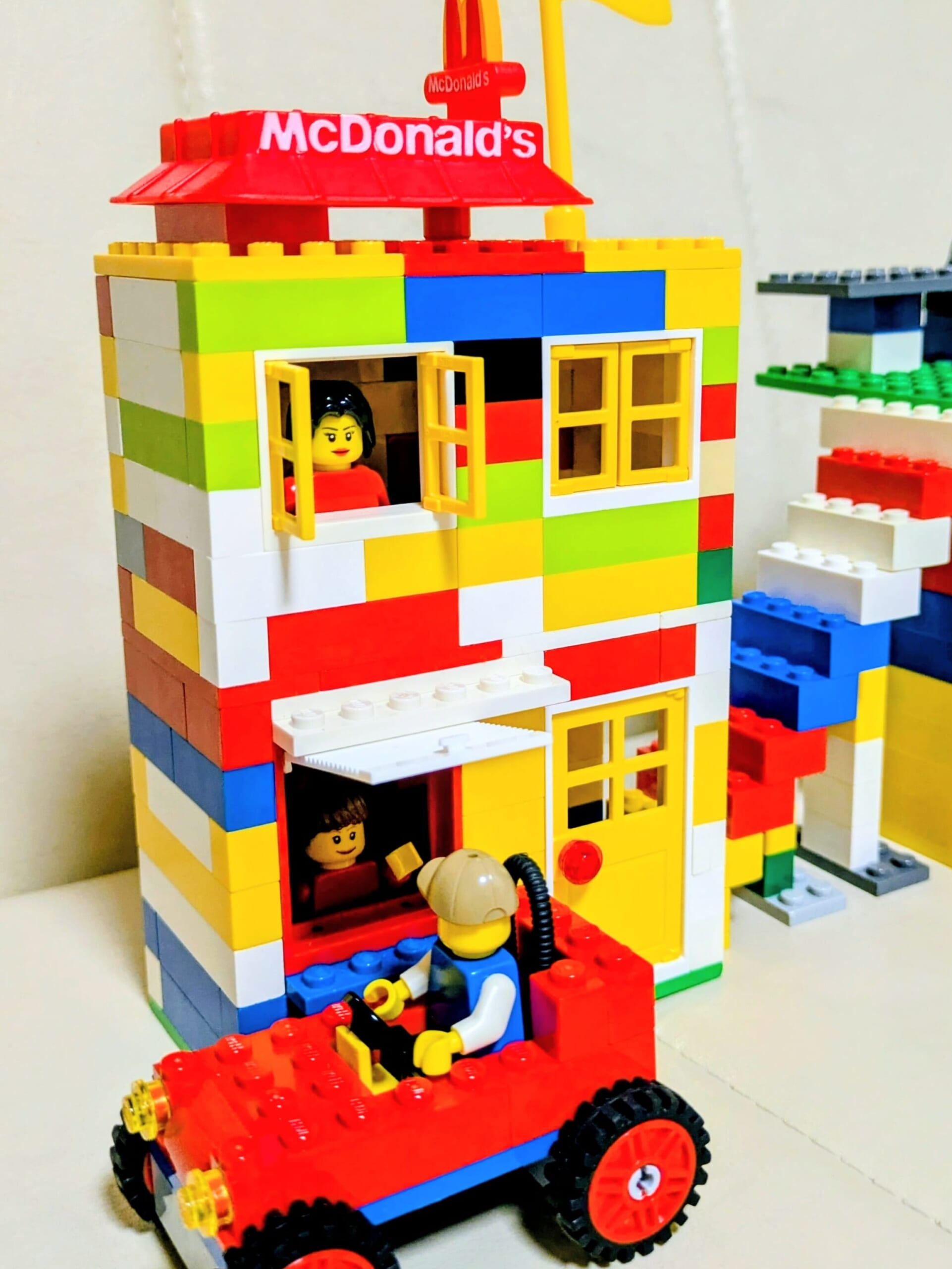 ハッピーセットのおもちゃとレゴブロックでドライブスルーを作りました