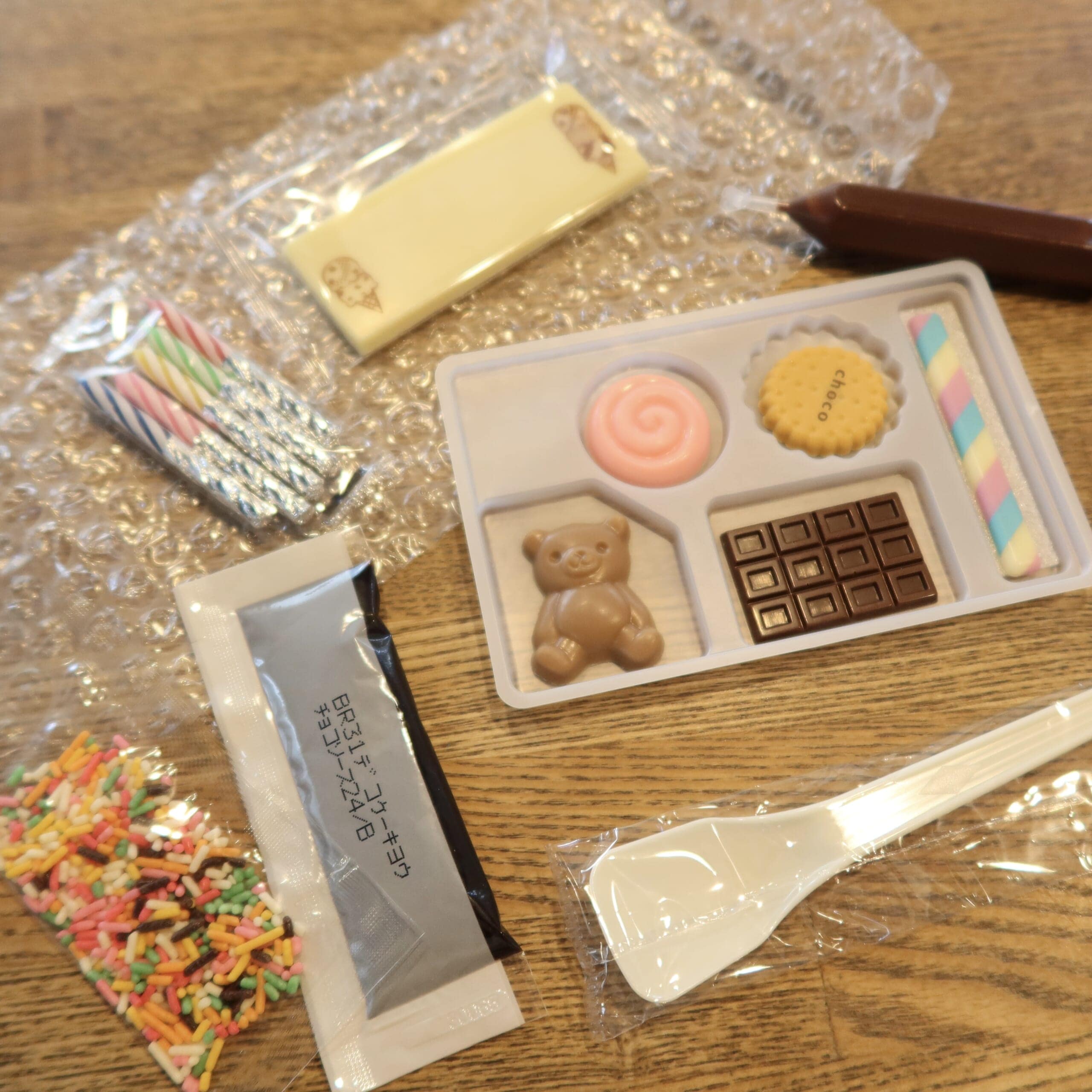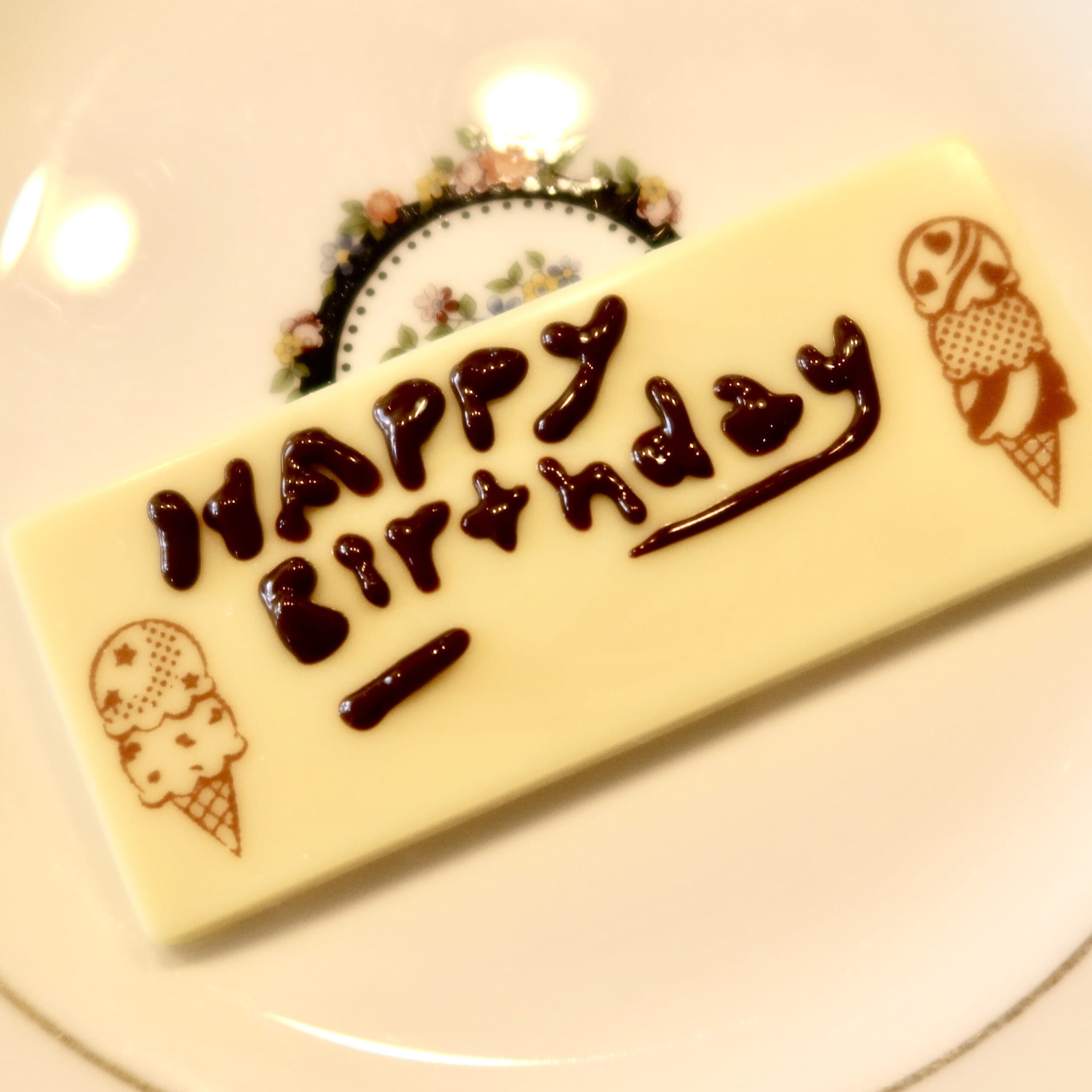 チョコプレートには、文字を書きます。