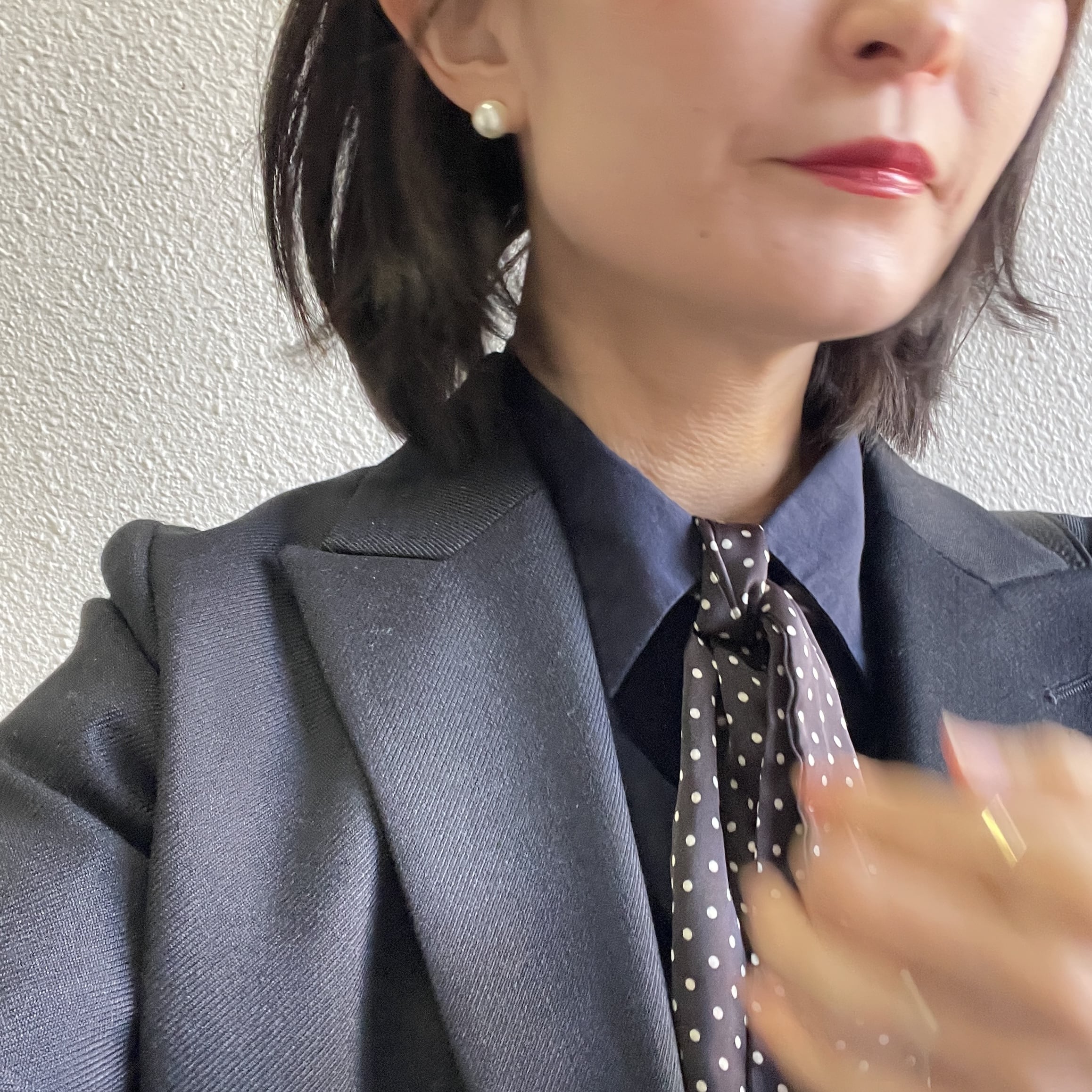 最近、仕事できれいめな服装を求められる場面があり、お気に入りの紺のブレザーのコーデで出勤しました。