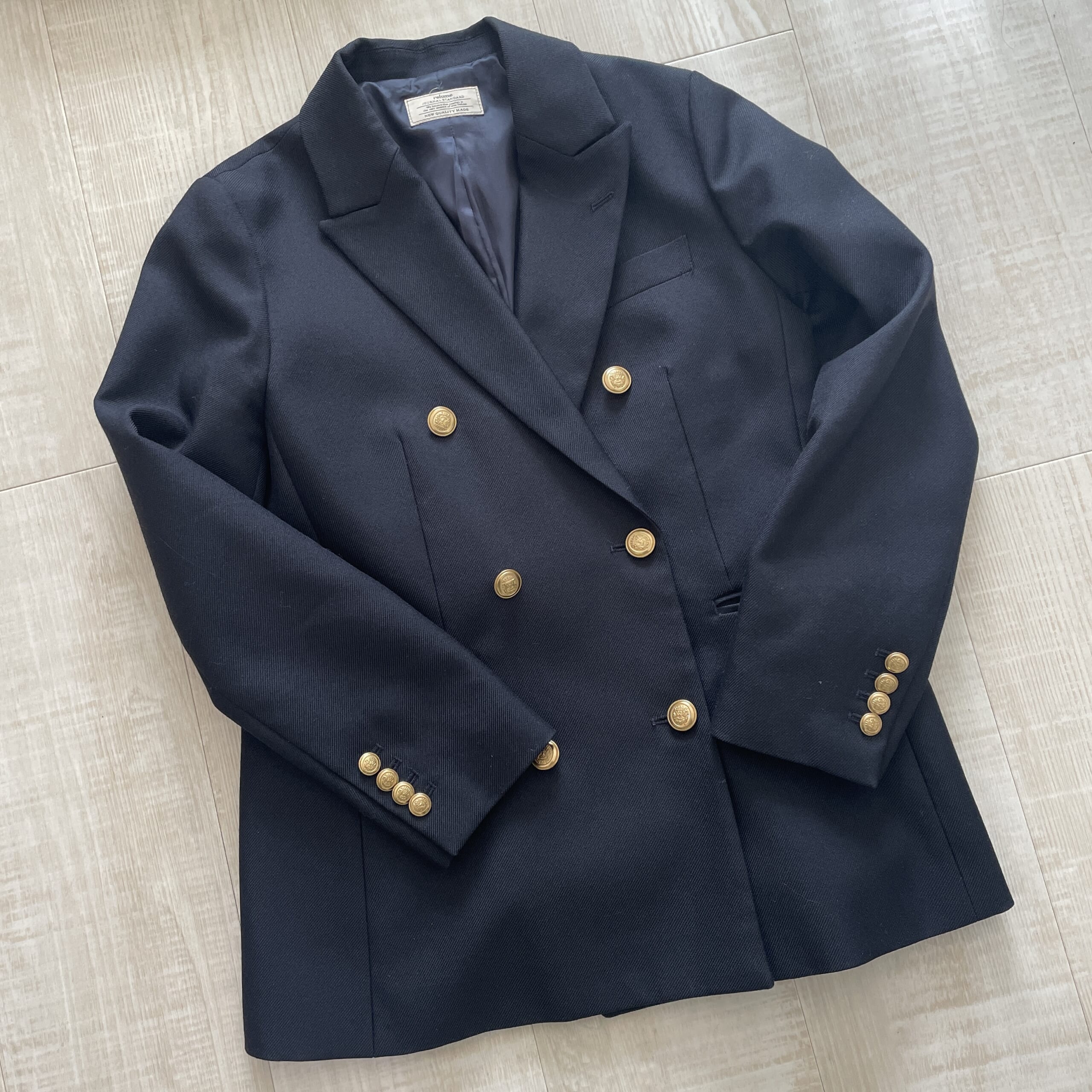 ダブルブレストのデザインで金ボタン。流行り廃りのない、定番デザインです。